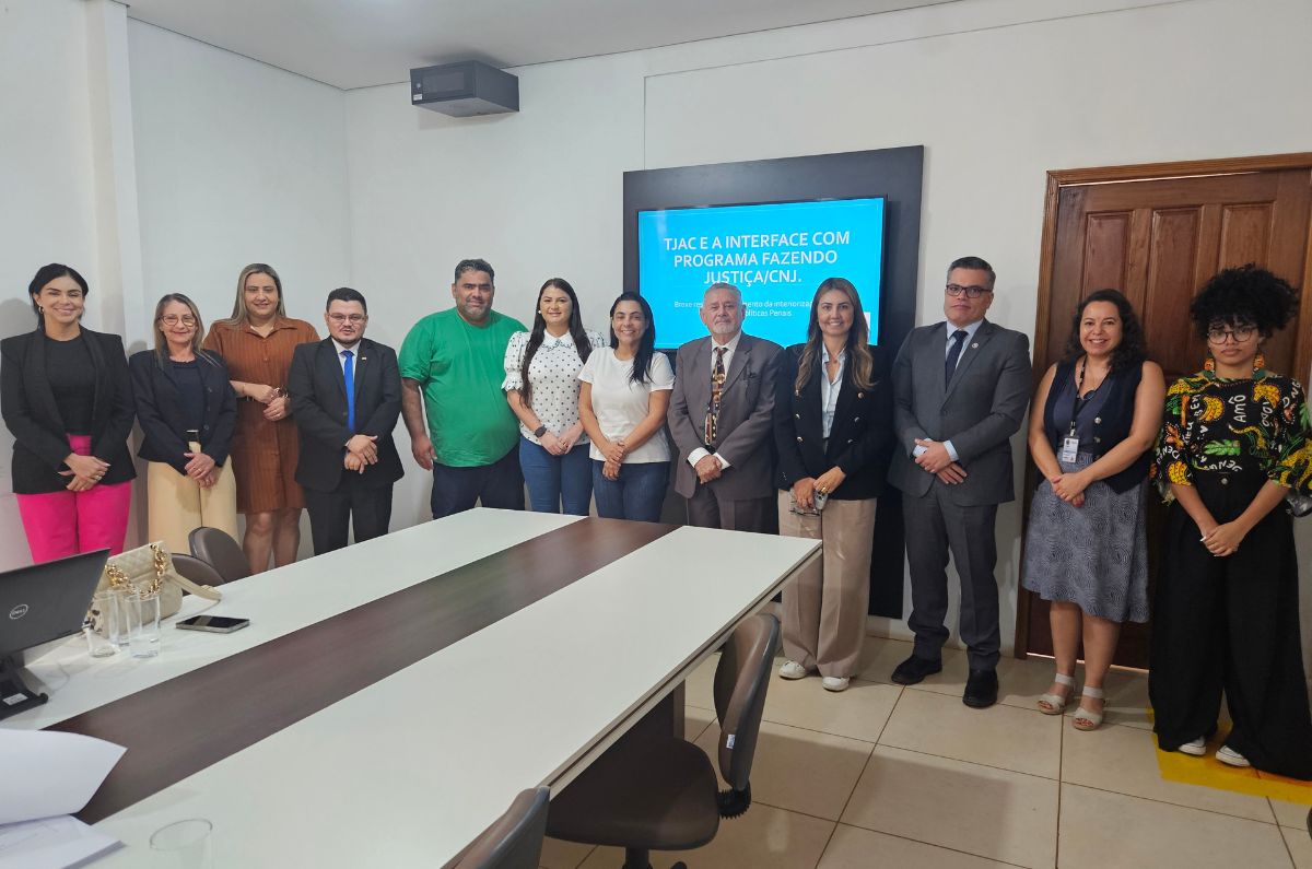 Participam do encontro o supervisor do GMF do Tribunal, desembargador Francisco Djalma, a coordenadora do GMF, juíza de Direito Andréa Brito, o promotor de Justiça do Ministério Público estadual, Rodrigo Curti, a assistente técnica do CNJ, Rúbia Evangelista, a prefeita de Senador Guiomard Rosana Pereira, o presidente da Câmara municipal vereador Sandrão e a vereadora Williene Jardim, além de servidores das instituições.