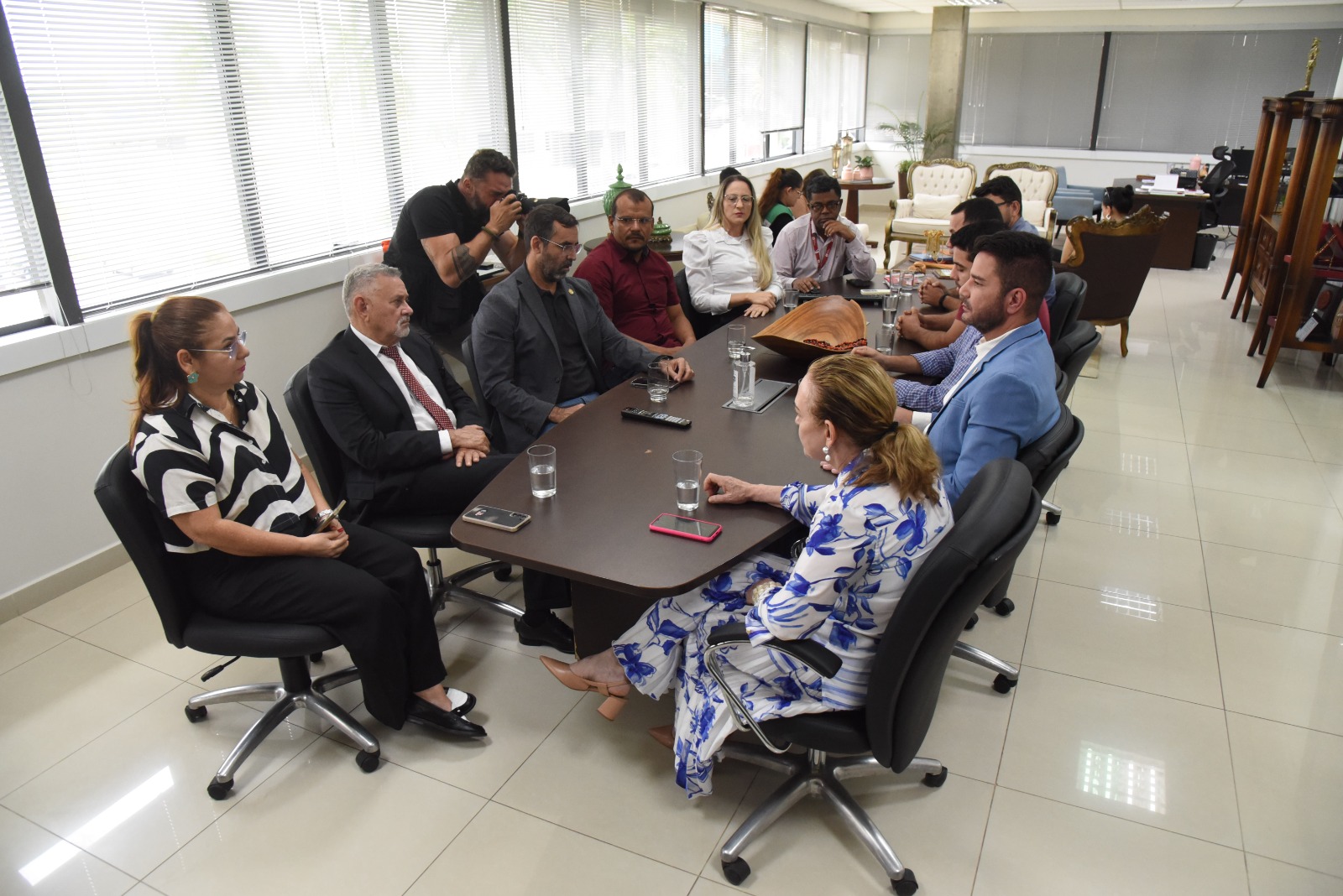 A reunião foi conduzida pela presidente do TJAC, Regina Ferrari, e pelo governador do Estado, Gladson Cameli, com a participação do desembargador Francisco Djalma, supervisor do Grupo de Monitoramento e Fiscalização do Sistema Carcerário e Socioeducativo (GMF), da desembargadora Waldirene Cordeiro, supervisora do Núcleo Permanente de Justiça Restaurativa, e dos secretários de Justiça e Segurança Pública (Sejusp), coronel José Américo, e de Obras Públicas (Seop), Ítalo Lopes, assim como do presidente do Instituto de Administração Penitenciária (Iapen), Marcos Frank.