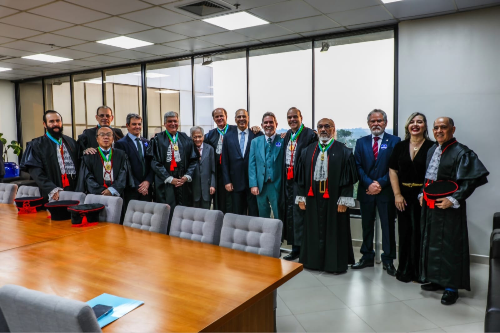 Após a leitura e assinatura do Termo de Posse, o desembargador foi agraciado com a Medalha do Mérito Judiciário, um reconhecimento à sua dedicação e contribuição para o Judiciário.