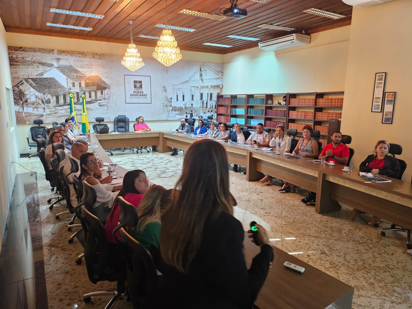 Atividade foi realizada nesta terça-feira, 15, no Palácio da Justiça, Centro Cultural do TJAC, com representantes de todos as autarquias, entidades e instituições parceiras nas ações de fomento da educação e capacitação dos apenados e socioeducandos