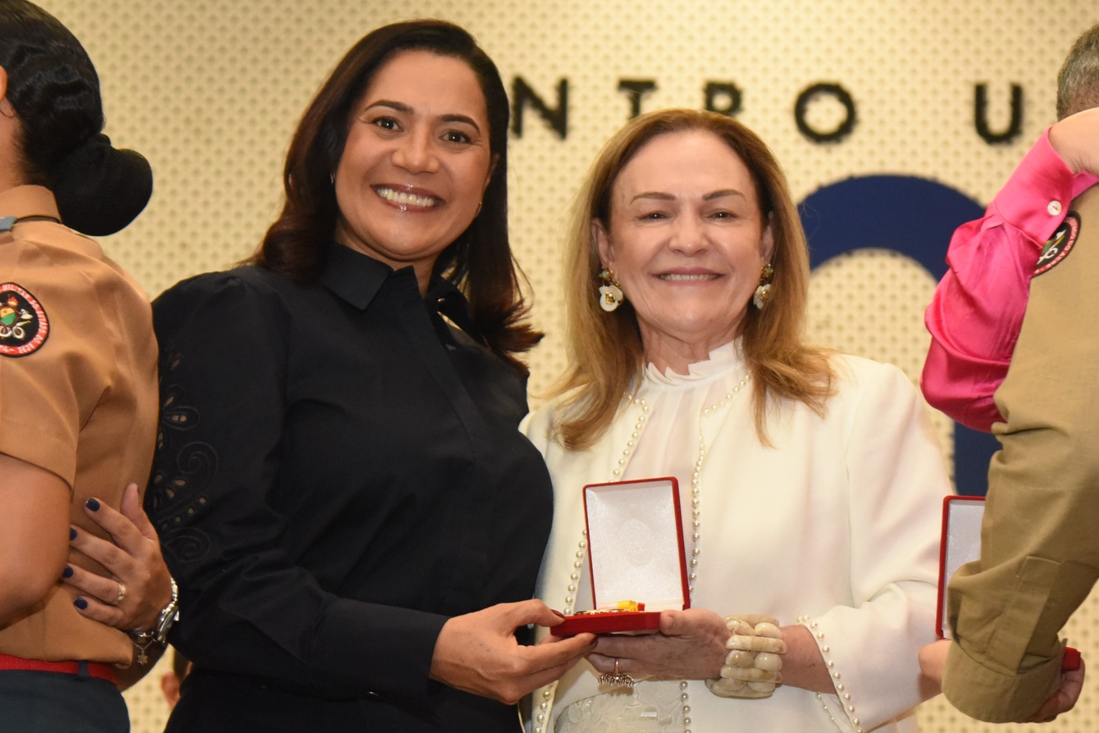 Entregue pelo Corpo de Bombeiros Militar do Acre (CBMAC), a medalha homenageia mulheres que são destaque por suas atividades profissionais, desempenho social e pelos serviços prestados à comunidade acreana. Na ocasião, a desembargadora-presidente recebeu a condecoração das mãos da governadora em exercício do Acre, Mailza Assis.