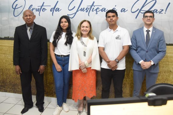 Os dois aprendizes que foram capacitados para atuar neste PIDJus são os alunos do 2º ano, a Wiliane Costa e o Efeson Paiva. A primeira experiência profissional foi oportunizada pelo bom desempenho escolar, o que é motivo de orgulho tanto para as professoras, quanto para os pais que estavam presentes na solenidade de inauguração.