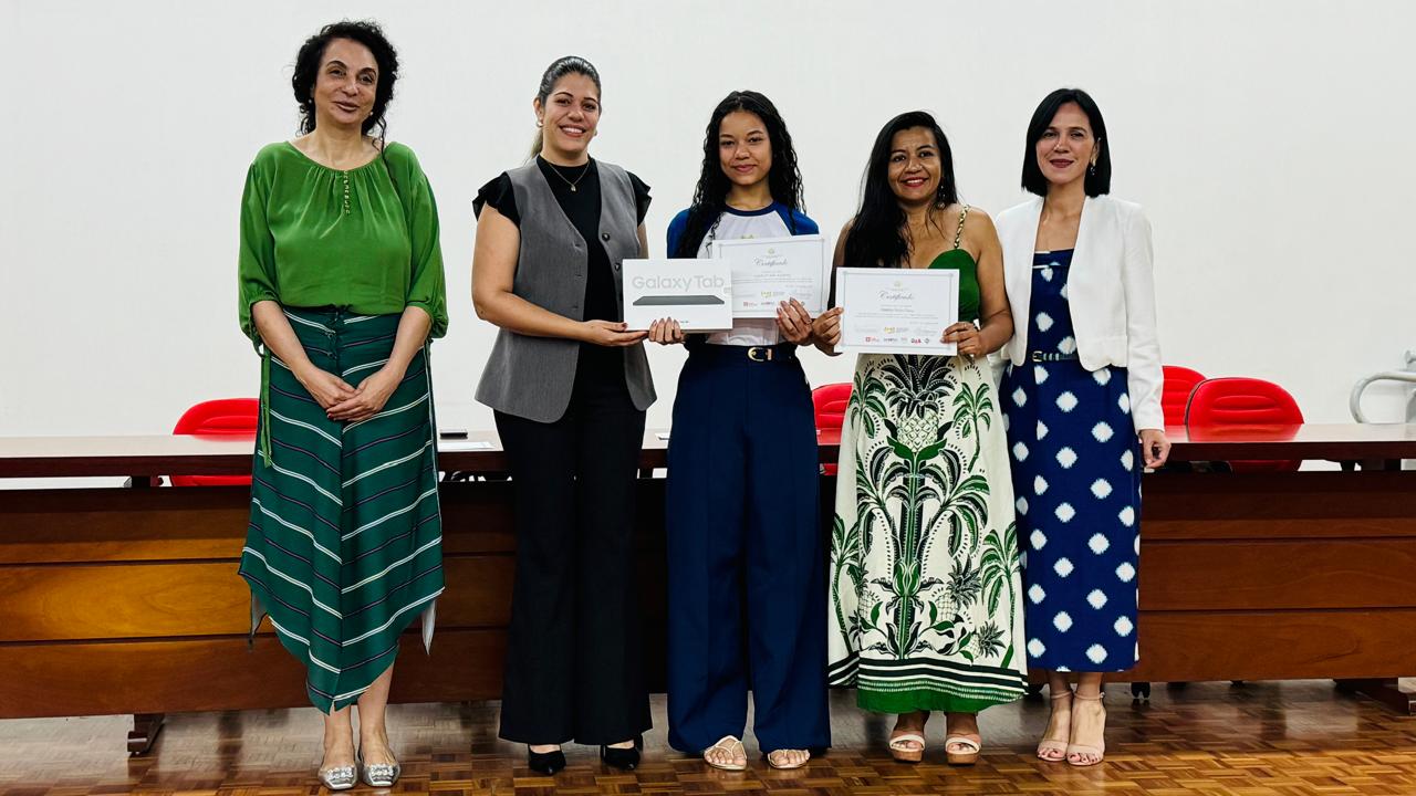 Os cinco estudantes receberam o certificado de redação vencedora do concurso, juntamente com um tablet Samsung Galaxy TAB A9+, 64 GB.