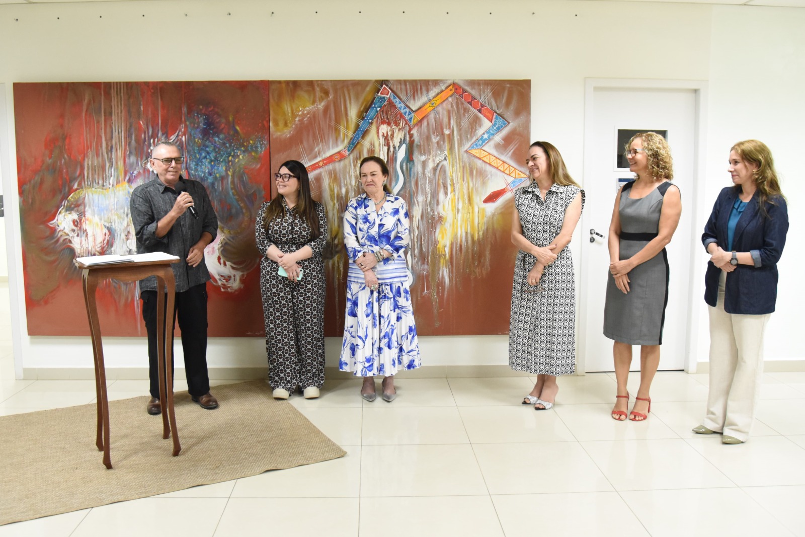 “Hoje apresentamos mais uma exposição neste espaço dedicado à arte. As ‘Poéticas das Ilusões Felizes’, do talentoso artista plástico Danilo S’Acre, nos levam a uma viagem. Gostaria de expressar minha mais sincera gratidão ao artista, por sua generosidade em compartilhar conosco o seu talento e sua visão. Em cada pincelada, em cada detalhe das obras que compõem esta mostra, somos convidados a vivenciar uma experiência subjetiva e intimista, mergulhando em camadas de emoções e interpretações que enriquecem a alma (…). Por isso, o Tribunal de Justiça do Acre se orgulha de incentivar e apoiar iniciativas que aproximem as expressões artísticas do nosso público e de nossa comunidade. Sabemos que a arte transforma, sensibiliza e amplia os horizontes, valores que dialogam profundamente com a missão do Judiciário de promover um mundo mais justo e harmônico”, disse a desembargadora-presidente do TJAC.