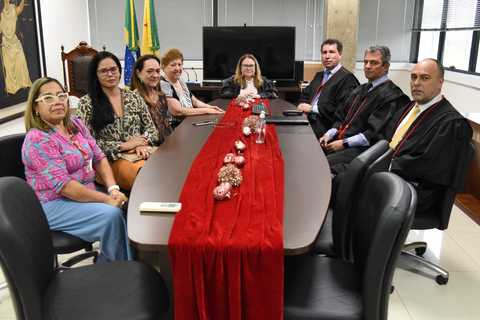 A presidente do Tribunal de Justiça do Acre (TJAC), desembargadora Regina Ferrari, acompanhada dos desembargadores Laudivon Nogueira, Nonato Maia e Lois Arruda, receberam, nesta quarta-feira, 27, a professora doutora Acácia Kuenzer, consultora que realizará o mapeamento e gestão de competências na instituição. Também acompanharam o diálogo, a juíza auxiliar da presidência Zenice Mota, a diretora de Gestão de Pessoas Iriá Farias e a gerente de Desenvolvimento de Pessoas Ivanete Mesquita de Cordeiro.