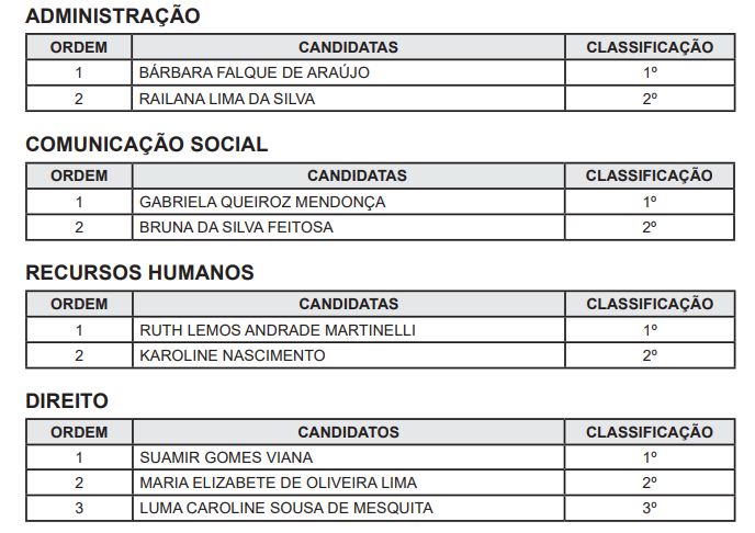 No edital 4/2024, foram convocados das áreas de Administração, Comunicação Social, Recursos Humanos e Direito. Confira: