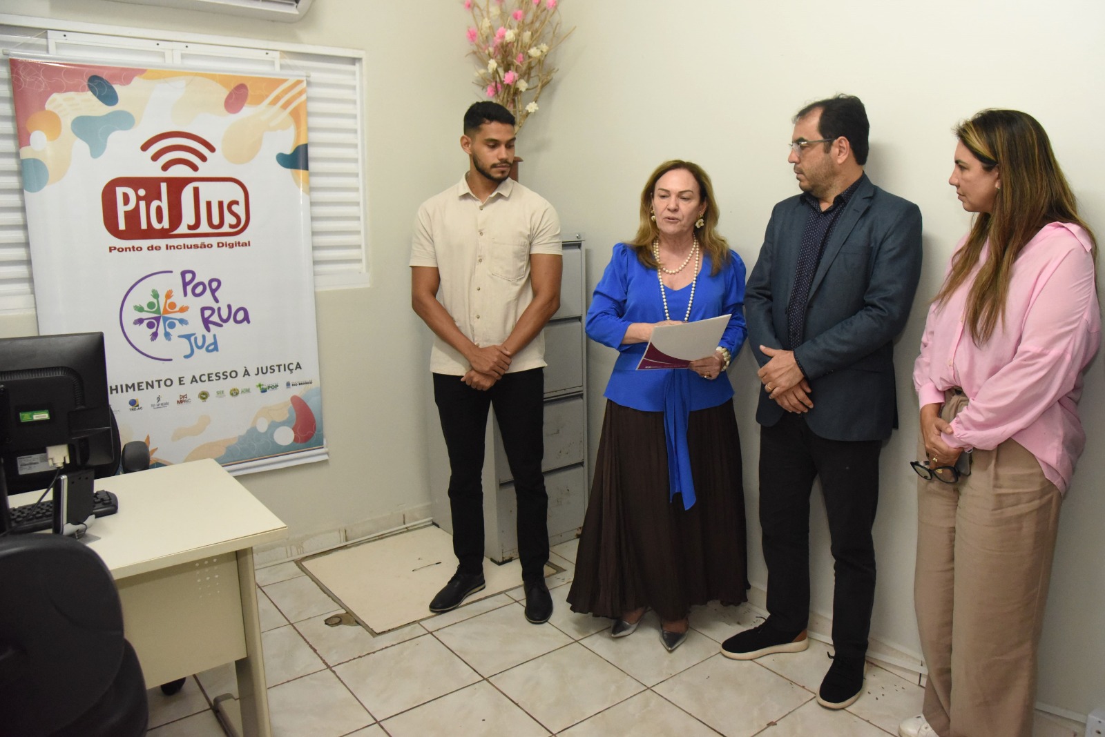Os Pontos de Inclusão Digital devem ser instalados em localidades que não sejam sede de comarca ou dentro de unidades do Poder Judiciário. Mas, inovando e efetivando a missão de garantir acesso e direitos às populações mais excluídas, o Tribunal de Justiça do Acre (TJAC) instalou nesta sexta-feira, 1° de novembro, o PIDJus PopRuaJud, uma unidade que terá os serviços do Ponto de Inclusão Digital dentro do Centro Pop, em de Rio Branco, voltado a atender a população em situação de rua.