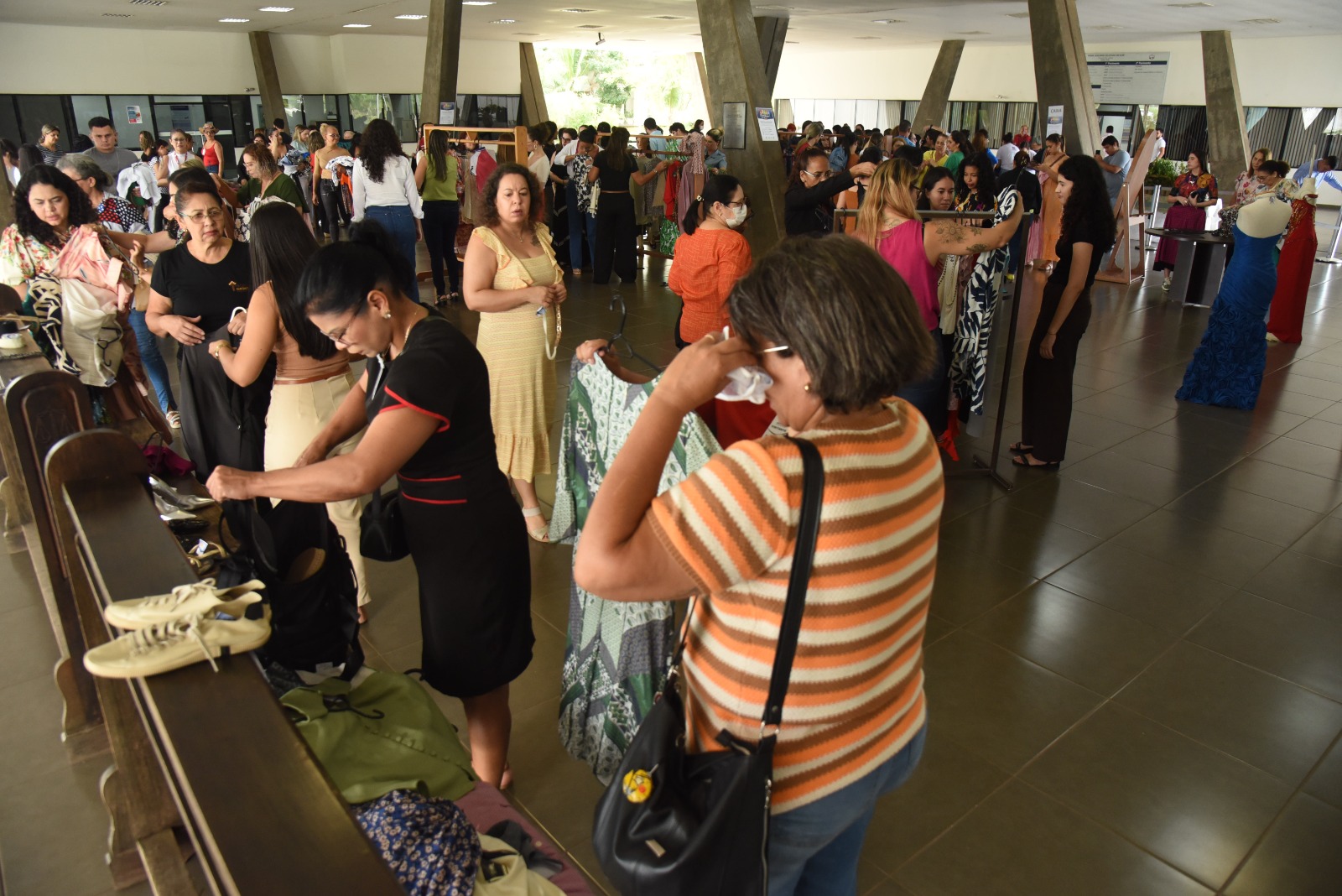A abertura do bazar estava agendada para as 9h, mas antes desse horário muitas pessoas já se concentravam no átrio em busca de garantir suas peças. Em seu pronunciamento, a desembargadora-presidente do TJAC, Regina Ferrari, expressou gratidão a todas e todos que contribuíram com suas doações para o nosso bazar.