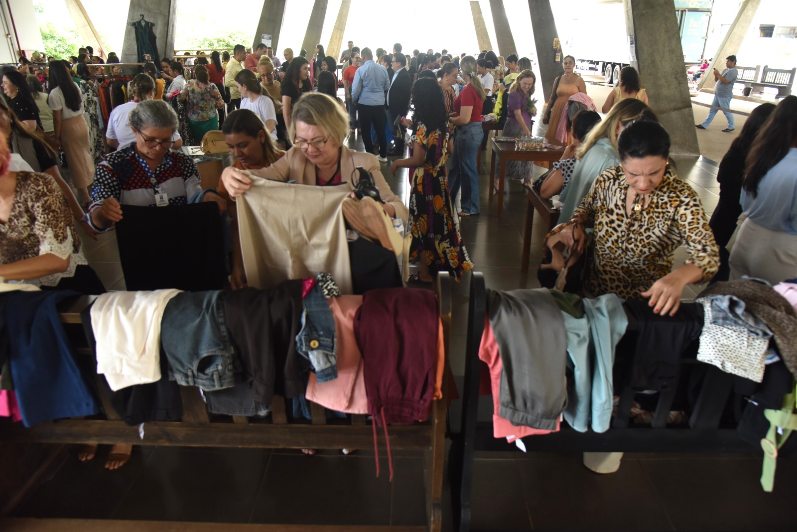 A abertura do bazar estava agendada para as 9h, mas antes desse horário muitas pessoas já se concentravam no átrio em busca de garantir suas peças. Em seu pronunciamento, a desembargadora-presidente do TJAC, Regina Ferrari, expressou gratidão a todas e todos que contribuíram com suas doações para o nosso bazar.