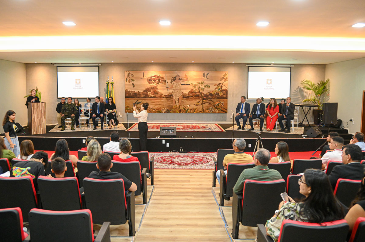 A entrega do espaço, feita pela administração do Tribunal de Justiça do Acre (TJAC), também marcou a instalação da obra em marchetaria “A deusa da Justiça nascendo das águas do Juruá”, do artista Maqueson Pereira.