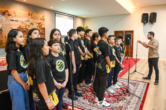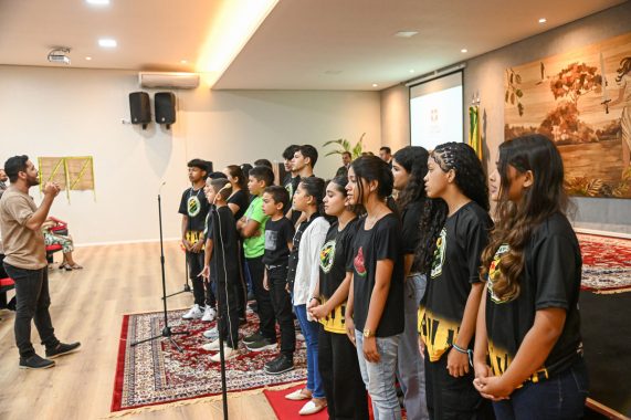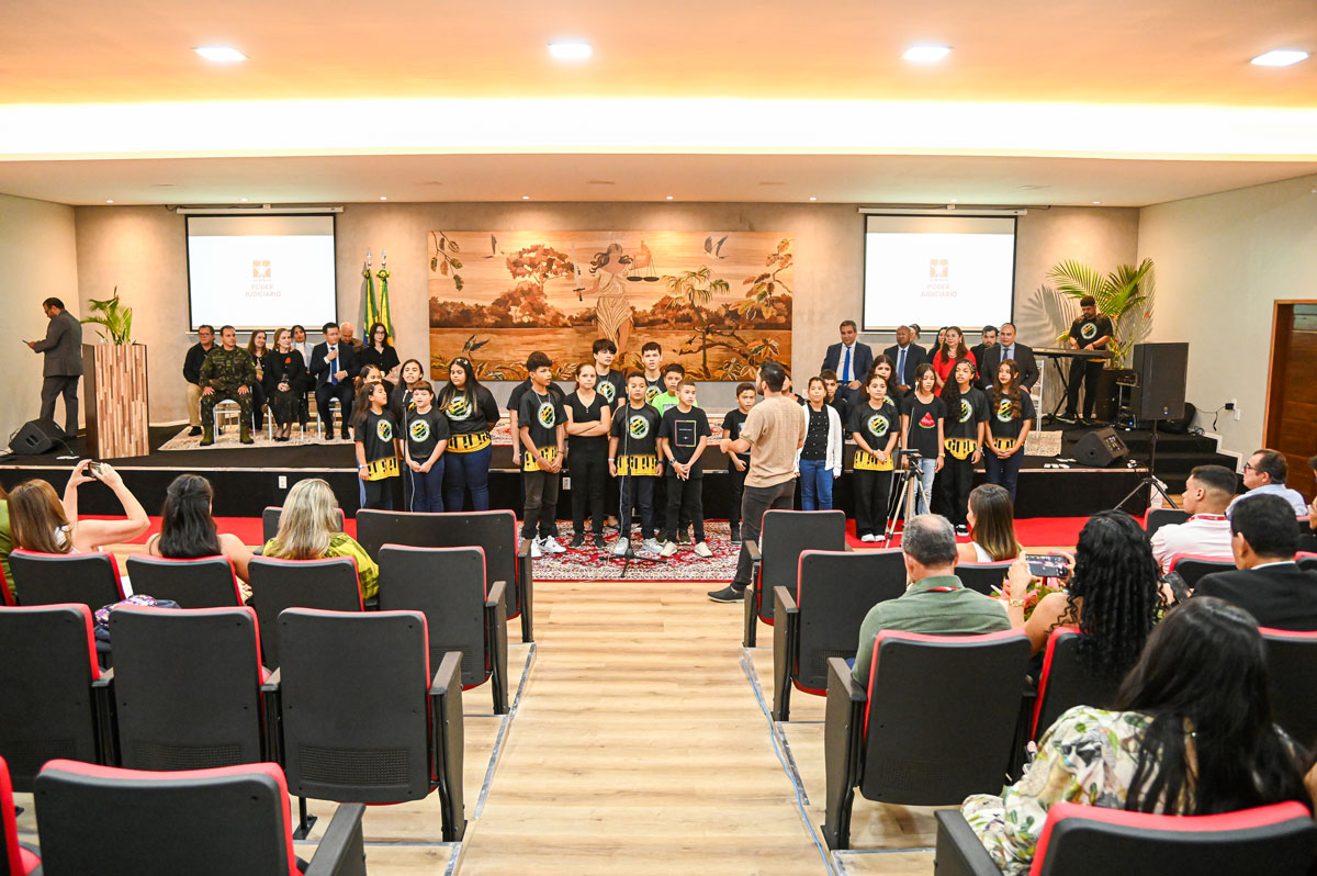 O servidor Antônio Augusto fez um discurso enquanto os demais servidores estendiam uma faixa demostrando gratidão à gestão da desembargadora Regina. Na oportunidade, os jovens do Conservatório Musical do Juruá fizeram apresentação.