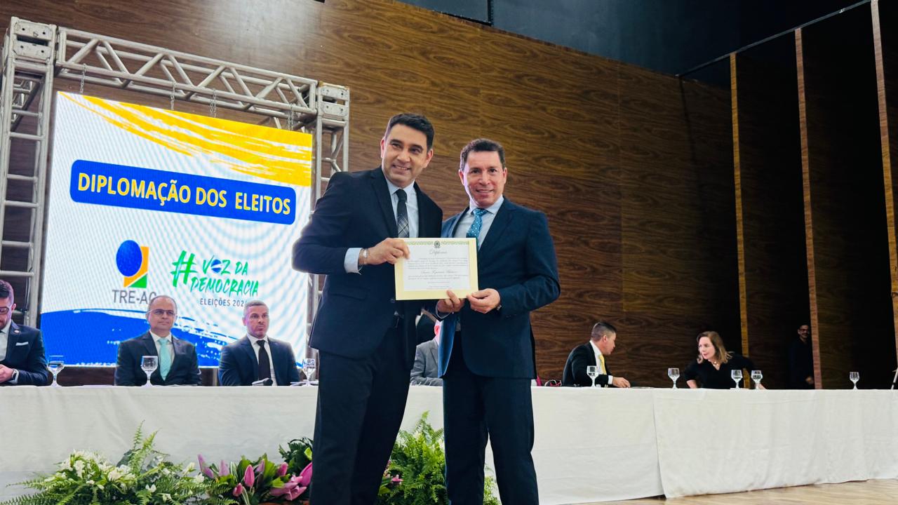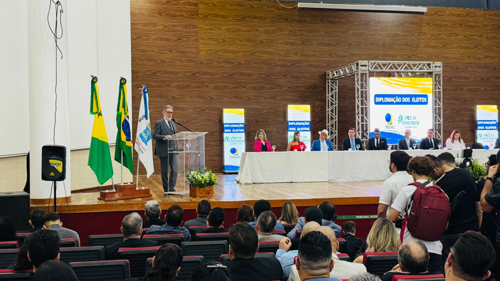 O presidente do Tribunal Regional Eleitoral do Acre (TRE-AC), desembargador Júnior Alberto, falou que a solenidade reforça a transparência do processo eleitoral e a segurança do pleito. Ele definiu o pleito como tranquilo. “A diplomação dos candidatos eleitos é a consagração da vontade popular expressa nas urnas. Realizamos um processo eleitoral transparente, seguro e respeitoso com os eleitores. As urnas eletrônicas, mais uma vez, demonstraram sua eficiência e confiabilidade, garantindo que a escolha do povo fosse plenamente respeitada”, ressaltou.