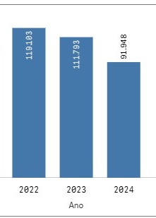 Conforme se vê do gráfico acima, em 2022, havia 119.103 processos que foram reduzidos para 111.793 em 2023. O TJAC seguiu avançando e há 91.948 processos pendentes no ano corrente. Isso contabilizando apenas os processos considerados para o Datajud pelo Conselho Nacional de Justiça (CNJ).