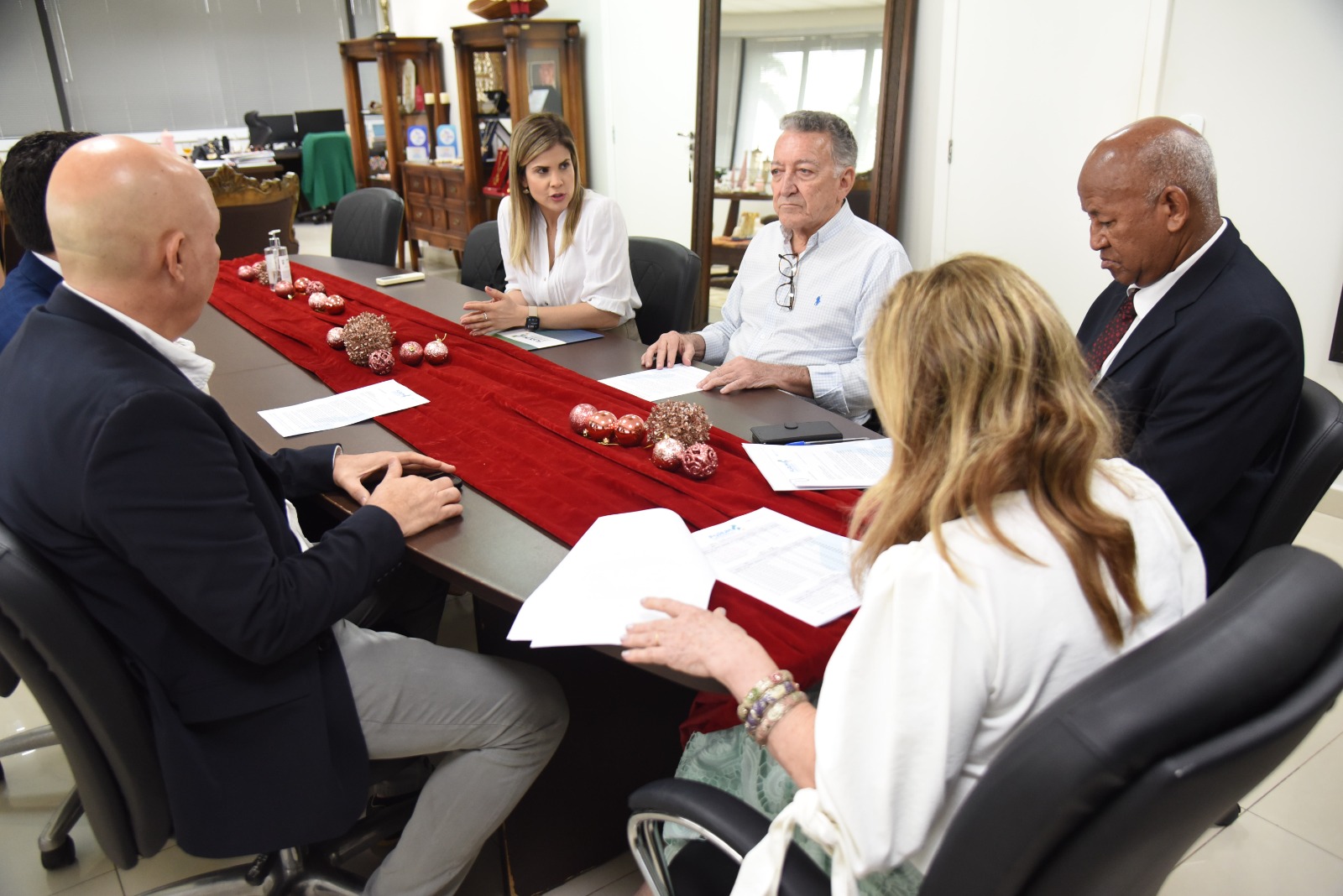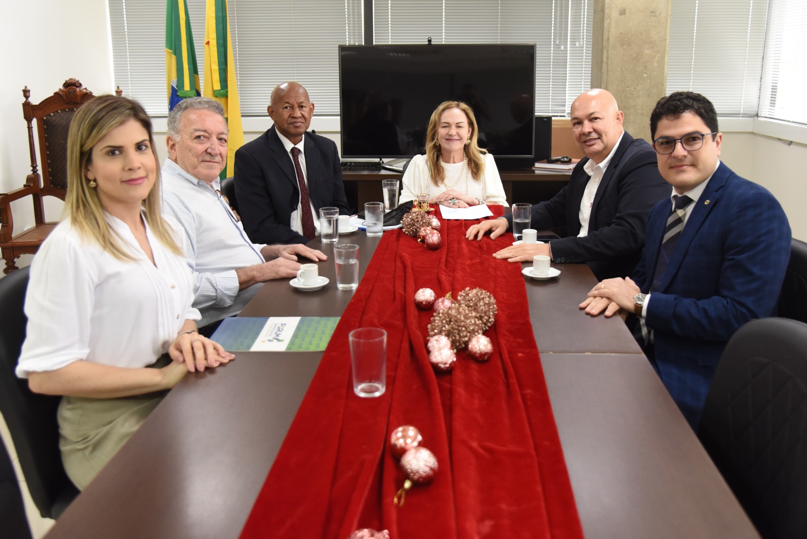 A desembargadora-presidente do Tribunal de Justiça do Acre (TJAC), Regina Ferrari, e o Corregedor-geral da Justiça, Samoel Evangelista, receberam nesta sexta-feira, 13, Tíssia Veloso, do Fórum Empresarial de Inovação e Desenvolvimento, José Adriano Ribeiro, presidente da Federação das Indústrias do Estado do Acre (Fieac), Assuero Veronez, presidente da Federação de Agricultura do Acre (Faeac) e o deputado estadual Eduardo Ribeiro.