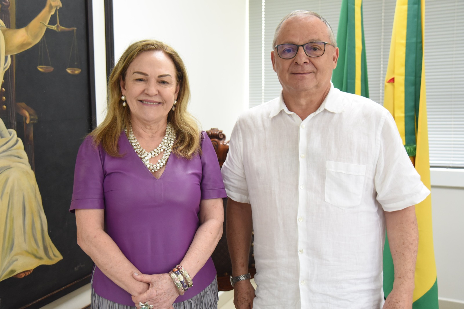 A desembargadora-presidente do TJAC, Regina Ferrari, recebeu nesta quinta-feira, 12, visita de cortesia do professor doutor Cézar de Alencar Arnaut de Toledo, da Universidade Estadual de Maringá (UEM), que está ministrando uma conferência na Semana de Filosofia da Universidade Federal do Acre (UFAC).