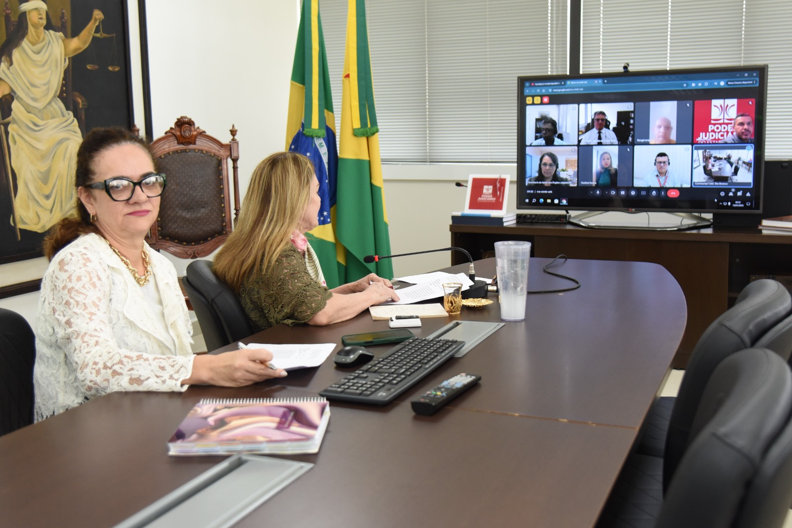 De forma híbrida, a reunião, que aconteceu sete dias após o encerramento do recesso forense, foi conduzida pela presidente do Tribunal de Justiça do Acre (TJAC), desembargadora Regina Ferrari