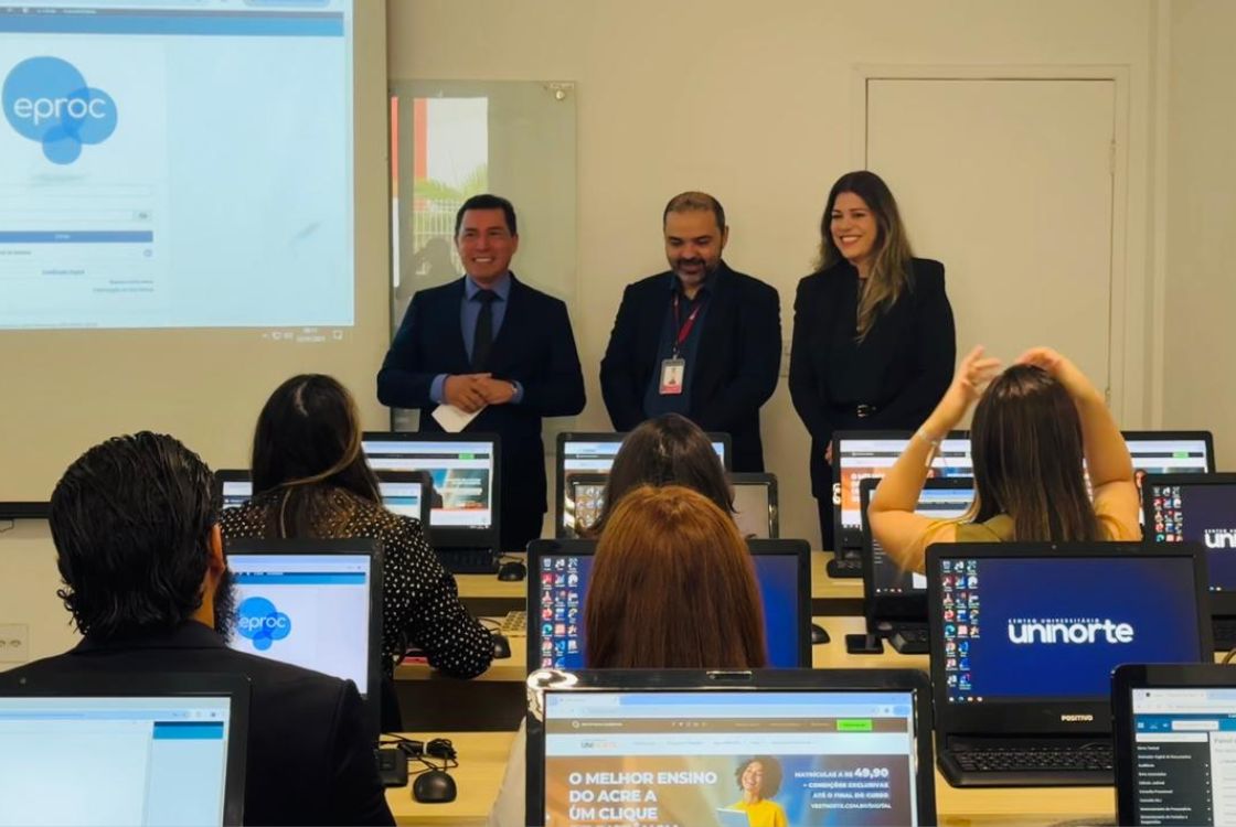 O Poder Judiciário do Acre dará início, na segunda-feira, 27, à implantação do sistema processual eletrônico eproc, em fase de teste, na unidade Centro Judiciário de Solução de Conflitos e Cidadania (CEJUSC). E na manhã desta quarta-feira, 22, representantes das instituições do Sistema de Justiça iniciaram treinamento, no laboratório de Informática da Uninorte, voltado para a utilização da ferramenta. O treinamento segue nesta quinta-feira, 23, para os registradores extrajudiciais.