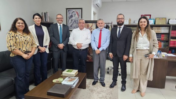 Esses e outros assuntos foram debatidos na reunião que também contou com a participação de juízas e juízes Andréa Brito, Robson Aleixo e Hugo Torquato, assim como, do diretor do Iapen Marcos Frank, o empresário Mazinho Serafim e servidoras e servidores públicos das instituições.