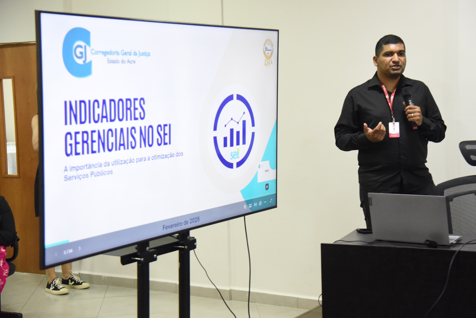 Após as falas da abertura, o gerente de serviços auxiliares da Corregedoria-Geral da Justiça, Sean Campos, realizou a apresentação do material reunido pelo juiz de Direito auxiliar da Coger, Alex Oivane, chamado a atenção para a importância da implementação de indicadores gerenciais no sistema de correção e gestão pública, pelo próprio Serviço Eletrônico de Informação (SEI). O facilitador destacou como esses indicadores são fundamentais para melhorar a eficiência e a transparência dos serviços prestados pelas instituições.
