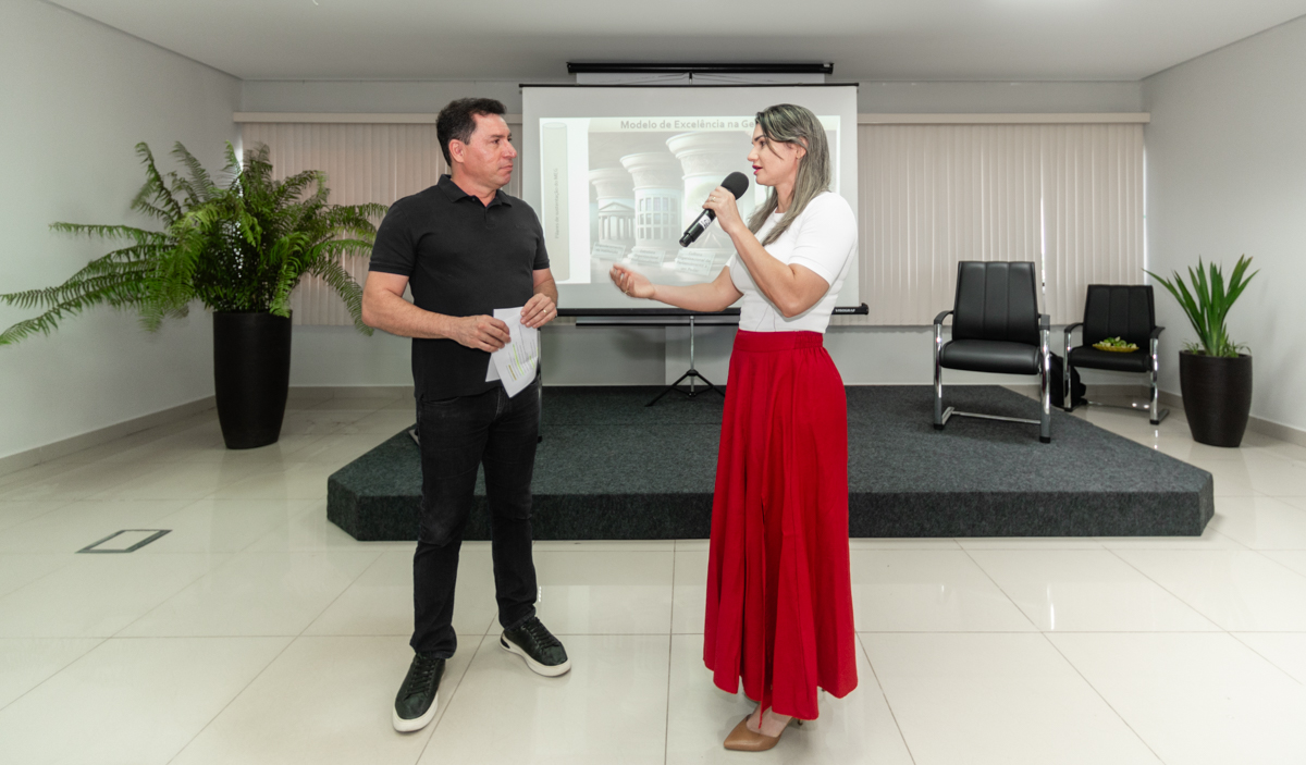 Após o encontro inicial com o desembargador-presidente Laudivon Nogueira, os integrantes da Asmil participaram de uma palestra ministrada pelo gerente de Planejamento Estratégico e Orçamentário do TJAC, Evandro Teixeira, com o objetivo de detalhar o Modelo de Gestão Estratégica e seu papel como instrumento transformador de dificuldades em oportunidades de avanços e melhorias para o alcance do nível de excelência nas atividades desenvolvidas no âmbito institucional.