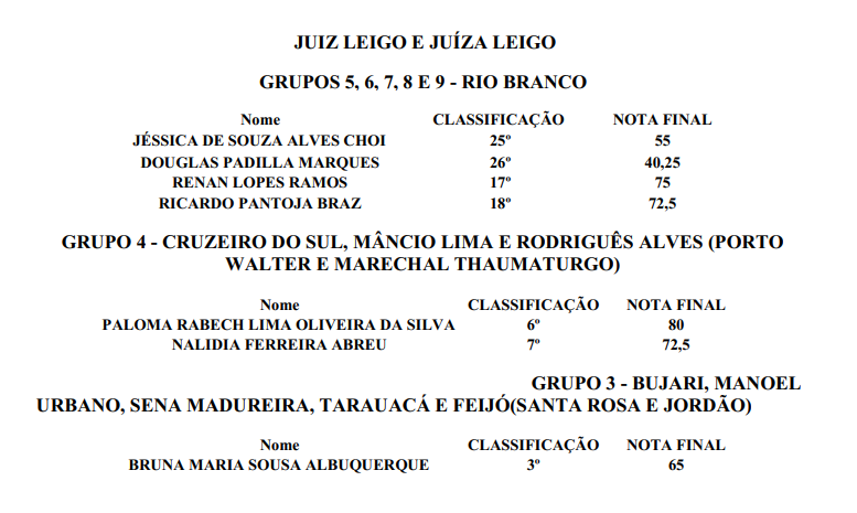 A Presidência do Tribunal de Justiça do Acre (TJAC) tornou público o edital n° 33/2025 com a convocação das candidatas e candidatos aprovados no processo simplificado para o desempenho das funções de Juiz Leigo no sistema de Juizados Especiais Poder Judiciário do Acre.