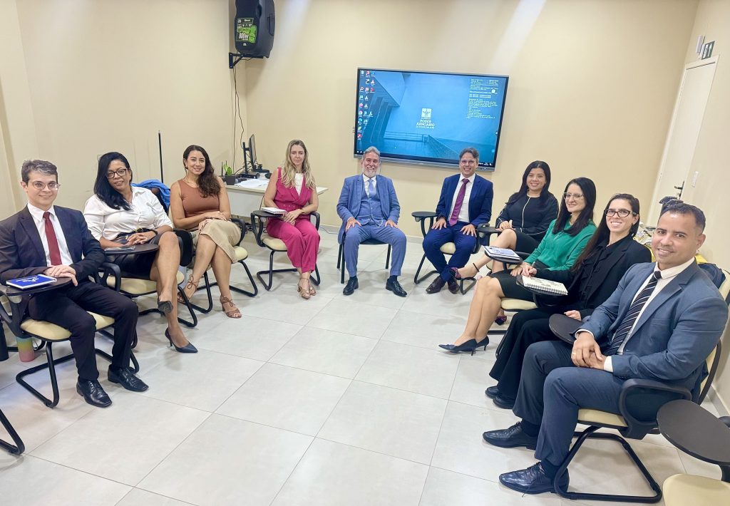 Diretor da Escola do Poder Judiciário do Acre (Esjud), o desembargador Luís Camolez reuniu-se com as novas magistradas e magistrados que participaram do curso de Formação Inicial, promovido pelo órgão de ensino. O encontro foi pautado pelo alinhamento estratégico acerca do andamento da ação educacional, que será concluída na metade de abril, e pela troca de informações sobre a carreira da magistratura.