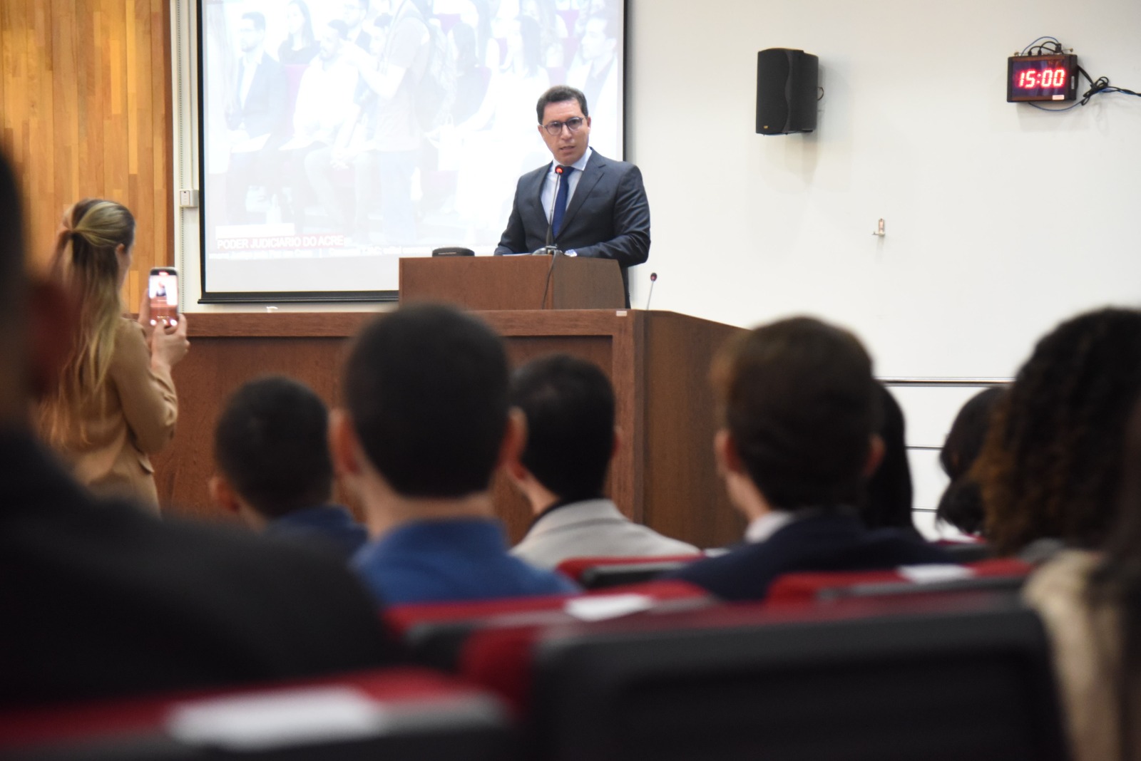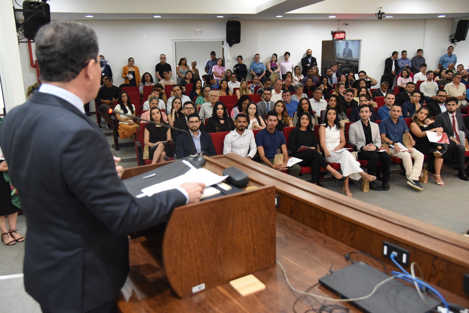 O corregedor-geral da Justiça também recebeu com alegria as novas servidoras e servidores, convidando todas e todos a darem seu melhor no trabalho. “Que vocês venham para contribuir com o Tribunal de Justiça, dando o melhor da inteligência de cada um de vocês, para que o Tribunal possa estar sempre em um patamar de excelência. Vocês são muito bem-vindos. Serviço público é para servir o público, venham com esse compromisso, com essa dedicação. Nós estamos aqui para entregar um serviço para quem nos procura”, comentou Maia.