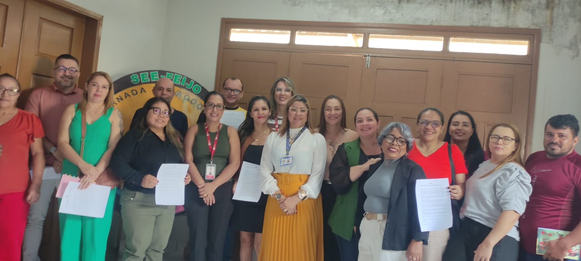 Em 2024, o Cejures capacitou 90 educadoras e educares da rede estadual em teoria de Justiça Restaurativa, nas cidades de Cruzeiro do Sul, Epitaciolândia, Brasiléia, Assis Brasil e Rio Branco. Então, agora, as facilitadoras do Cejures, Acássia Martins e Mirlene Taumaturgo acompanhadas da chefe de Departamento de Segurança Escola, Milla Almeia e da chefe de Divisão de Projetos de Integração e Prevenção de Violência, Maria Betânia deram formação nas três cidades.