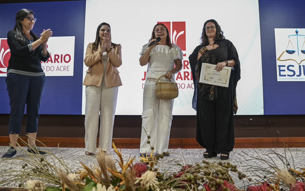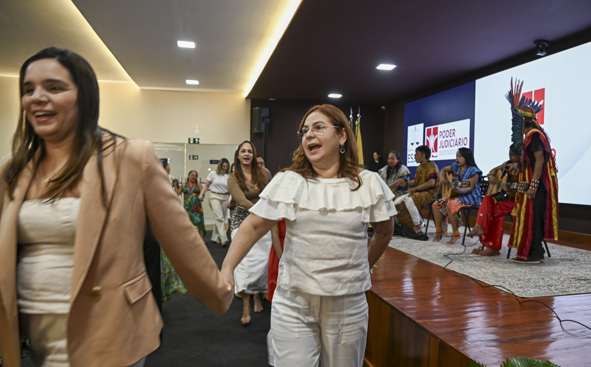 O evento de encerramento das atividades contou com a presença da supervisora do Núcleo Permanente da Justiça Restaurativa (NPJR), desembargadora Waldirene Cordeiro, representando a Presidência do Tribunal de Justiça do Acre (TJAC); da juíza auxiliar do CNJ Kátia Roncada; da titular da Vara de Execução de Penas e Medidas Alternativas (Vepma); além da palestrante Katie Mansfield, que, na oportunidade, foi homenageada e assistiu a uma apresentação do povo originário Huni Kui, que apresentou uma dança tradicional no auditório da Esjud.