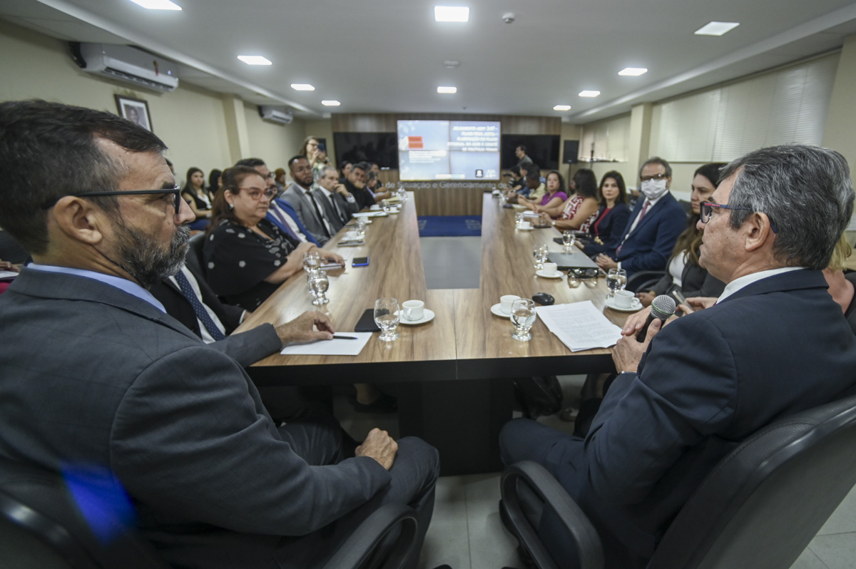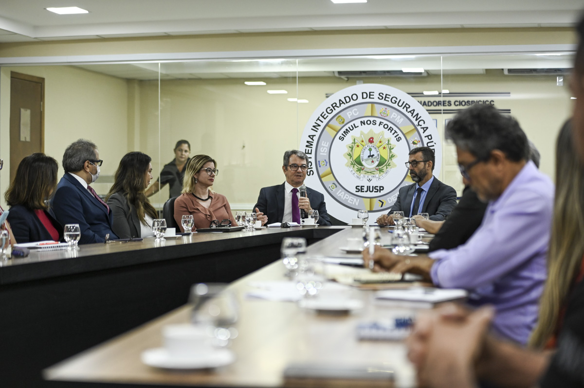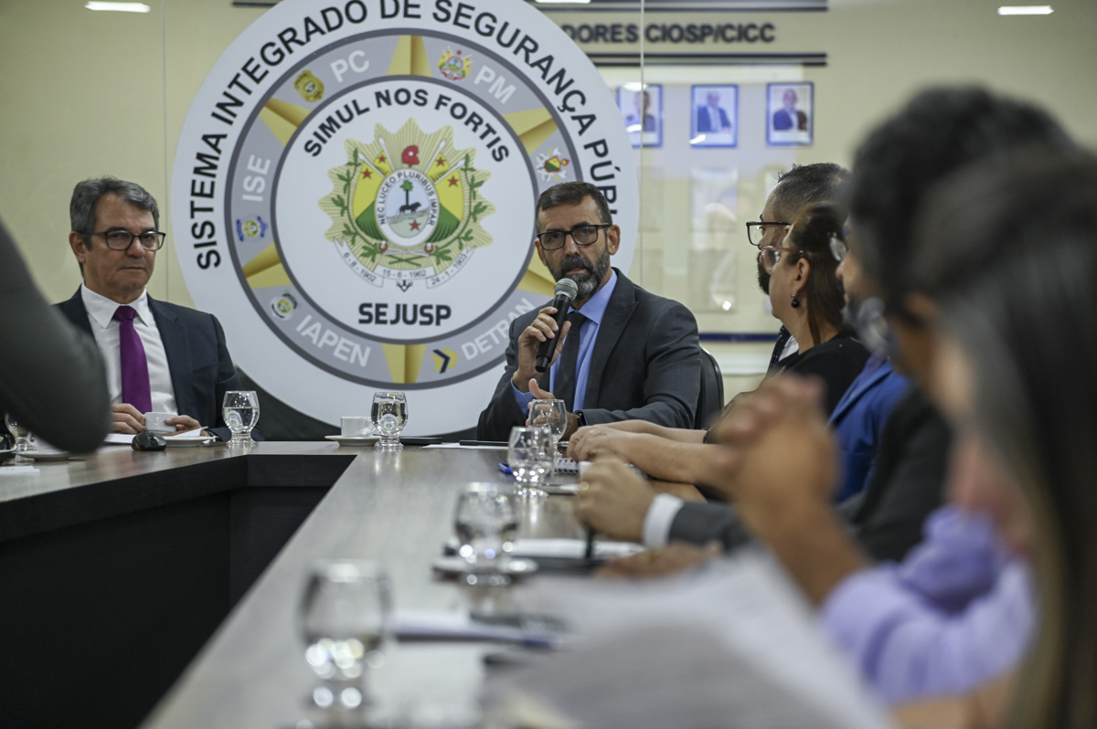 Em reunião realizada na Secretaria de Estado de Justiça e Segurança Pública (Sejusp), o corregedor-geral da Justiça do Acre Nonato Maia, chamou os presentes a unirem-se para atuar no enfrentamento a situação de calamidade dentro das prisões