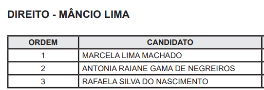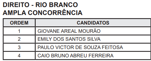 O Tribunal de Justiça do Acre (TJAC) tornou público os editais n.° 3 e 28/2024, com a convocação de acadêmicos aprovados no processo seletivo para preenchimento de vagas e formação de cadastro de reserva de estágio de estudantes de graduação. Foram convocados quatro candidatas e candidatos para Rio Branco e mais três para Mâncio Lima.