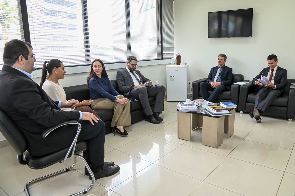 O corregedor-geral da Justiça, desembargador Nonato Maia, juntamente com o juiz auxiliar Anastácio Menezes receberam as delegatárias Fabiana Faro do 1º Ofício de Registro de Imóveis de Rio Branco e Núbia Soares da Serventia de Porto Acre, também os delegatários Fábio Fabrício (substituto do 1º Ofício de Registro de Imóveis de Rio Branco) e Danilo Bezerra do 3º Tabelionato de Notas e Registro Civil das Pessoas Naturais de Rio Branco.