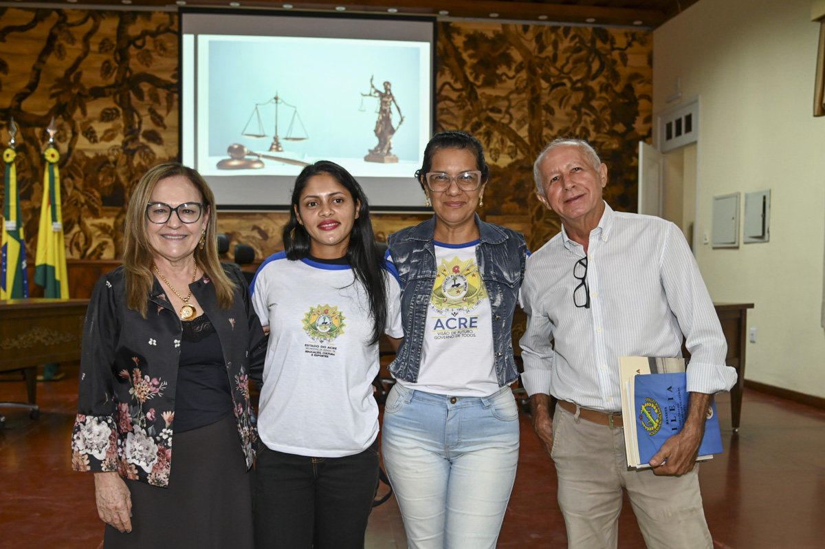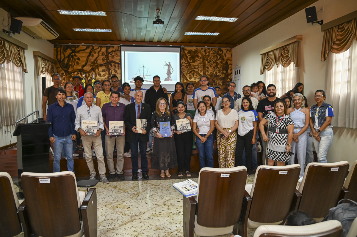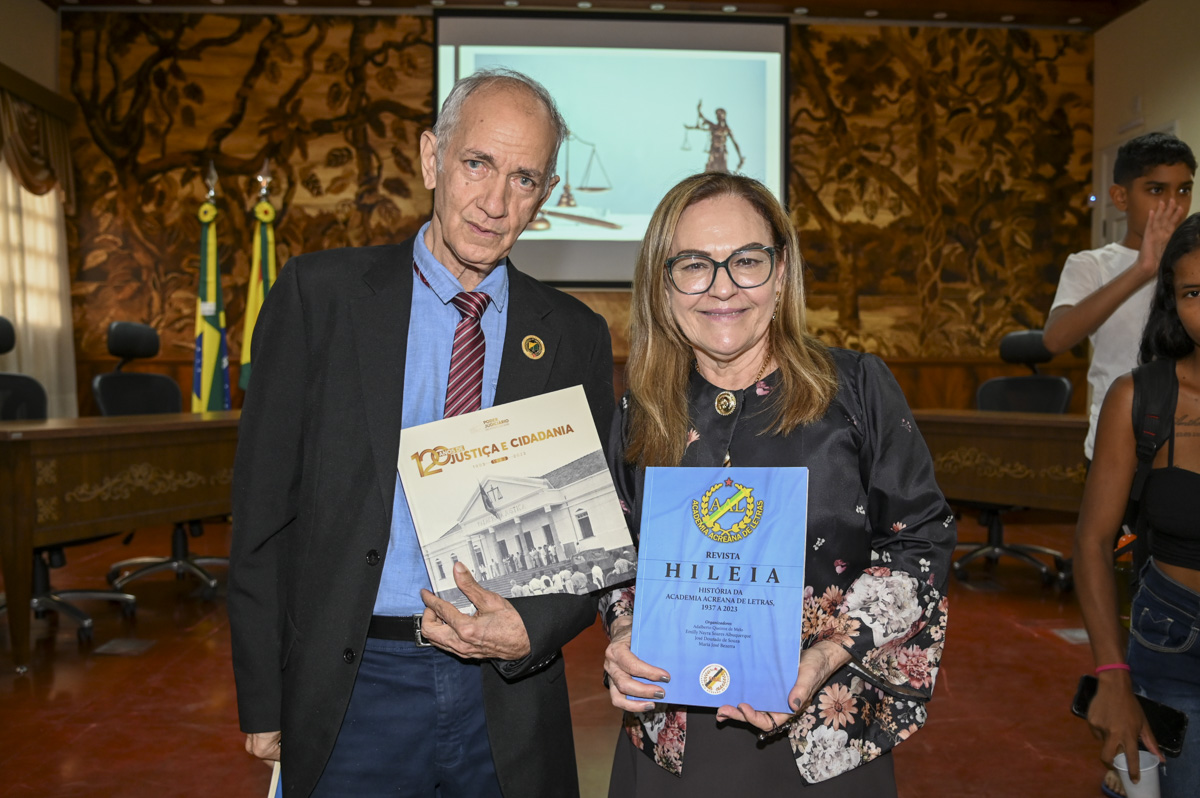O evento, realizado no auditório do Palácio da Justiça, contou com a presença, entre outros, do presidente e do vice-presidente da Academia Acreana de Letras (AAL), Adalberto Queiroz e José Dourado, respectivamente; do coordenador do Patrimônio Cultural do Município de Rio Branco, José Wilson Aguiar (Fundação Garibaldi Brasil); da gerente de Acervo do TJAC, Ana Cunha; além de professoras, professores e cerca de 50 alunas e alunos dos 1º, 2º e 3º anos do Ensino Médio do Centro de Educação de Jovens e Adultos (Ceja).