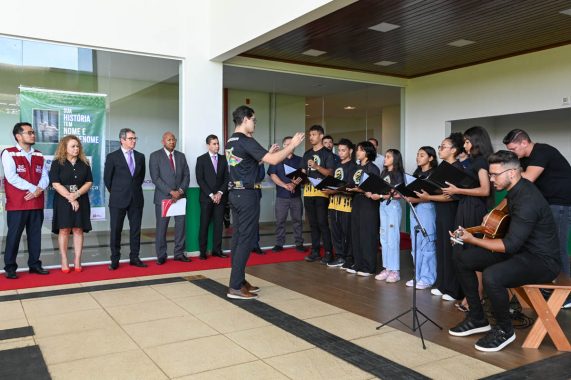 A abertura contou também com a apresentação do coral Vozes do Povo, formado por crianças e adolescentes da Cidade do Povo, a partir de um projeto social do Tribunal de Justiça do Acre, em parceria com o Conservatório de Música do Juruá.