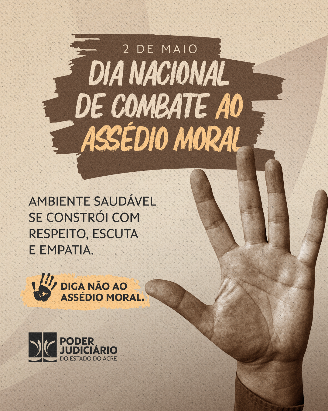 O dia 2 de maio marca o Dia Nacional de Combate ao Assédio Moral, data dedicada à conscientização, prevenção e combate à violência psíquica ou física no ambiente de trabalho. Embora o Tribunal de Justiça do Acre (TJAC) desenvolva essa política ao longo de todo o ano, por meio de suas comissões, é no início de maio que as ações são intensificadas.