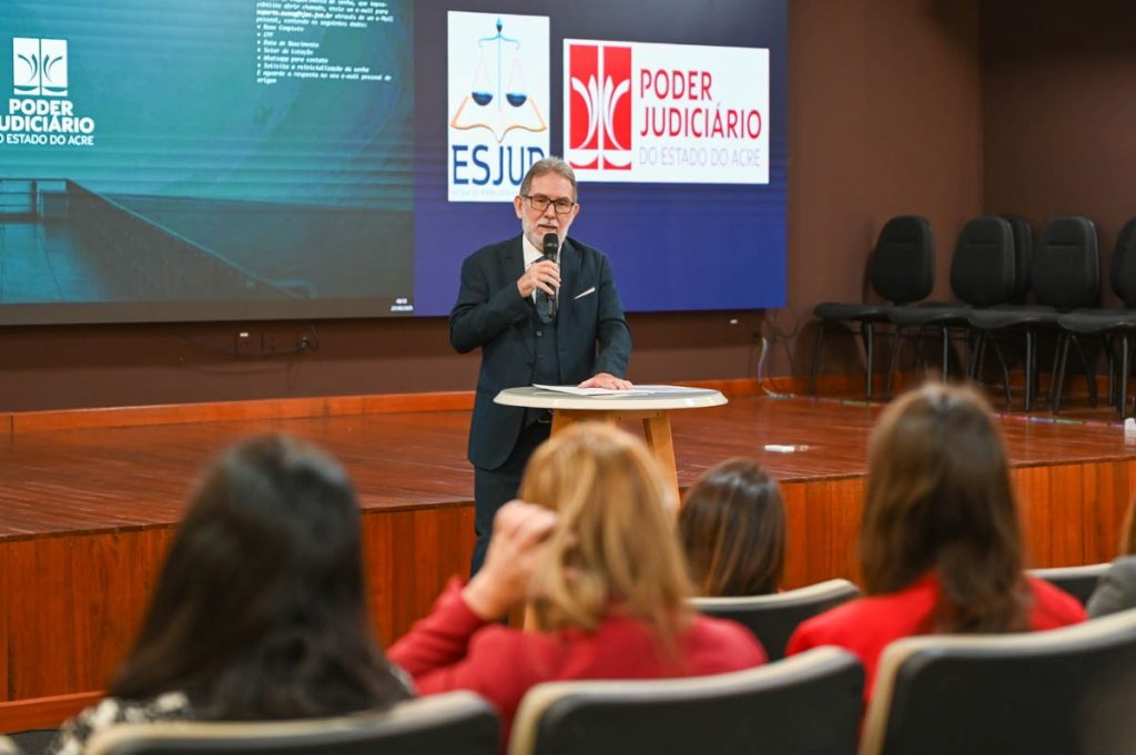 A abertura teve as presenças do desembargador Luís Camolez, diretor do órgão de ensino, da juíza de Direito Olívia Ribeiro, presidente da Associação dos Magistrados do Acre (Asmac), da juíza de Direito Andréa Brito, titular da Coordenadoria Estadual das Mulheres em Situação de Violência Doméstica e Familiar; da juíza Luciana Rocha, auxiliar da Presidência do Conselho Nacional de Justiça (CNJ), e facilitadora do curso; além de juízas, juízes, serventuárias e serventuários da capital e do interior do Estado.