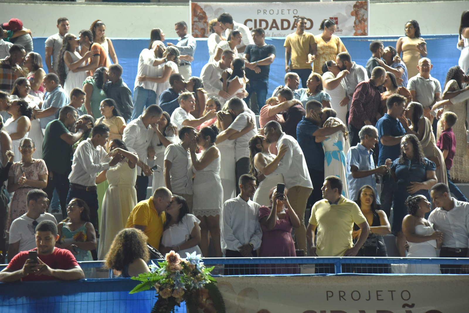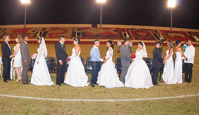 Em 2017, no estádio Arena da Floresta, teve beijo para dar e vender, foram 2.240 casais dizendo o sim, um número recorde de pessoas atendidas em uma única edição. Em todo esse tempo, perdeu-se a conta de quantos participaram desses atos e a demanda continua, afinal, compartilhar a vida, encontrar alguém para esquentar os pés nas noites frias, dividir as tristezas e alegrias é o desejo de muitas e muitos.