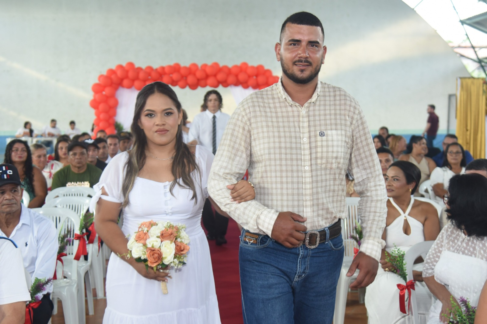 As cerimônias começam com a marcha nupcial e a entrada dos casais. O casal mais novo e o casal mais velho daquele ato são colocados em destaque, representando todos os outros. A juíza ou o juiz responsável pela comarca conversa com as noivas e noivos e então faz as perguntas clássicas, sobre aceitar o matrimônio e libera o beijo.
