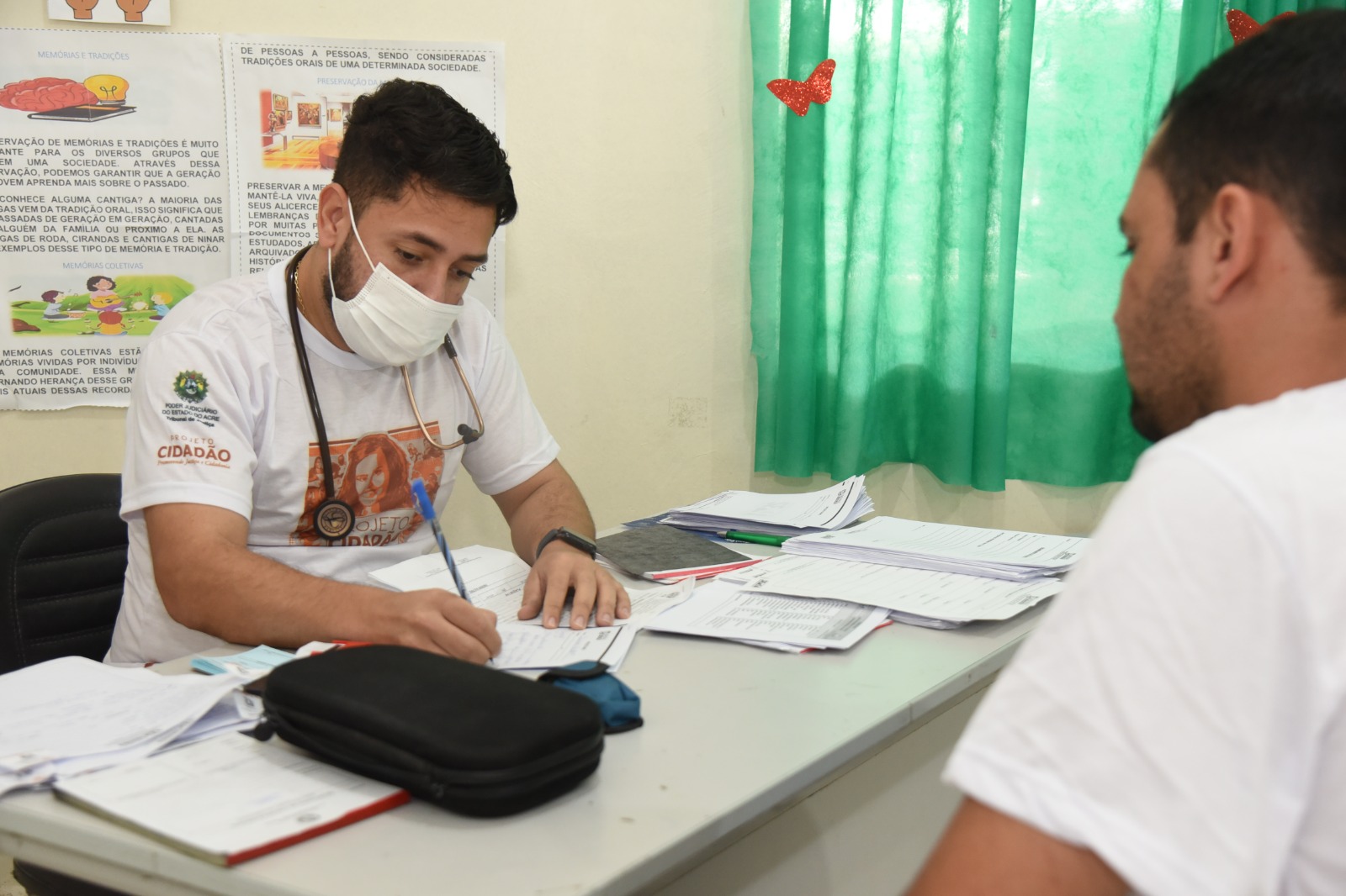 “Nós somos a equipe de saúde do Centro Médico do TJAC, ou seja, voltada para atender o público interno. Como estamos em ação itinerante em Tarauacá atendemos o nosso público de servidores e magistrados e mais a comunidade durante esses dois dias na escola, mas nesta terça-feira, vamos atender exclusivamente o nosso público alvo no próprio Fórum. Trouxemos o aparelho de ultrassom, que é recente em nossos serviços para poder contribuir com o Projeto Cidadão unindo esforços para transformar realidades e ampliar o acesso à cidadania”, ressaltou.