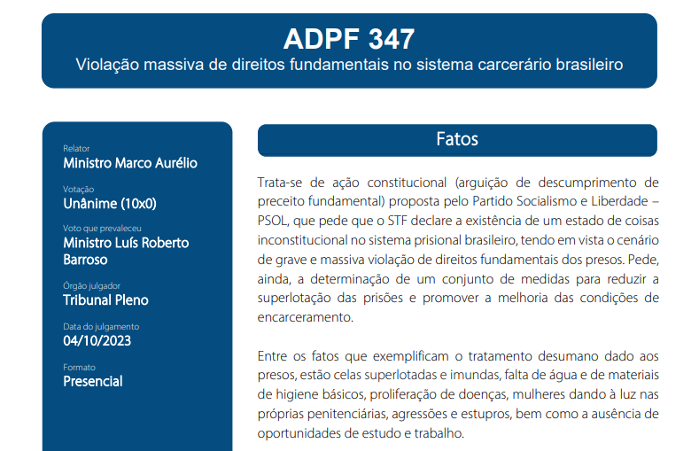 O Pena Justa e a ADPF nº 347 do Supremo Tribunal Federal