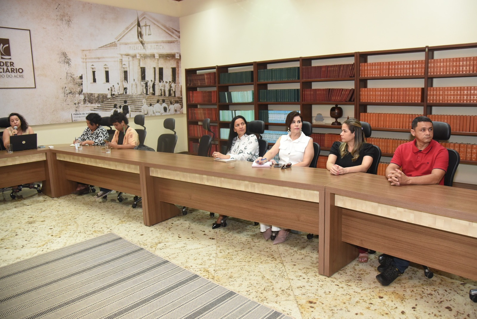 O encontro contou com a participação da coordenadora do GMF, a juíza de Direito Andréa Brito; do juiz de Direito Clóvis Lodi (Vara Estadual do Juiz das Garantias); da consultora estadual do CNJ para o Plano Pena Justa Rúbia Evangelista; das chefes dos Departamentos de Assistência à Saúde e de Assistência Social e Atenção à Família do Instituto Penitenciário do Estado do Acre (IAPEN/AC), Ingrid Suárez e Cláudia Costa, respectivamente; bem como de representantes das instituições e entidades parceiras.