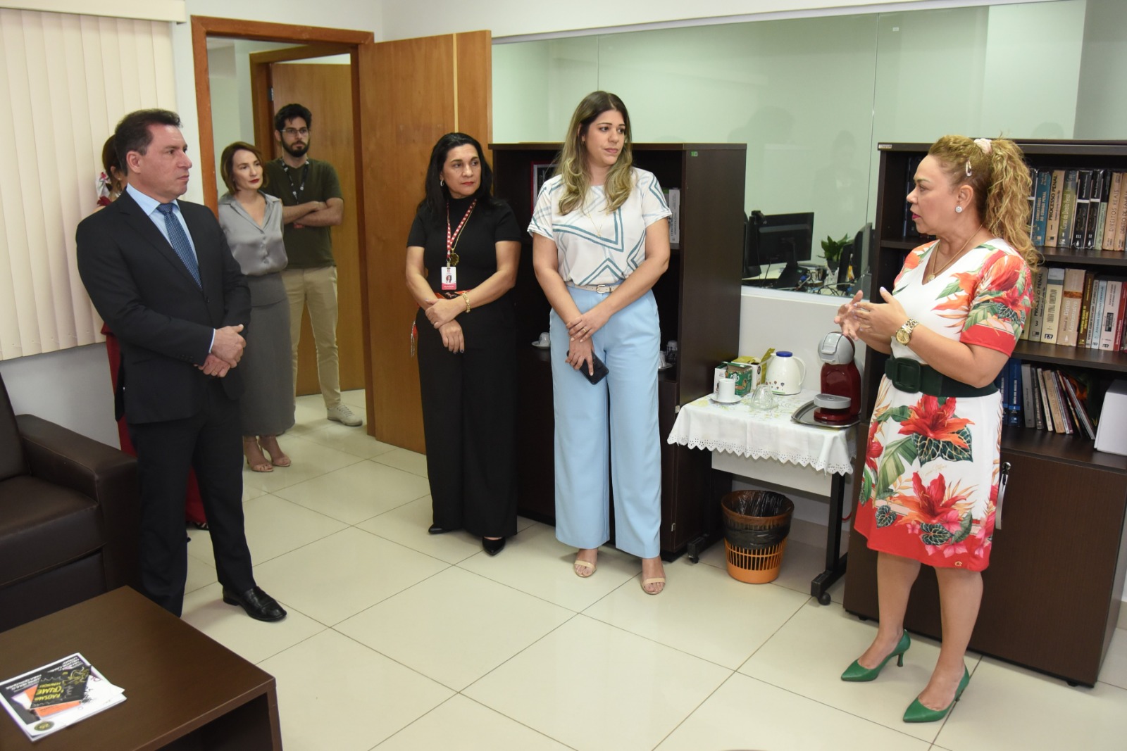 Acompanhado pela juíza auxiliar da Presidência e gestora-geral de implantação do eproc, Louise Santana; pela gestora negocial do sistema, Ana Felisberto; pelos servidores do Núcleo de Análise de Negócio (NUSAN), Geane Morais e Vinicius Scramin; e pela secretária de Gestão de Pessoas, Nassara Nasserala, o presidente do TJAC, desembargador Laudivon Nogueira, foi recebido pela juíza titular da Vara de Registros Públicos, Órfãos e Sucessões e de Cartas Precatórias Cíveis de Rio Branco, Luana Campos, juntamente com a equipe da unidade. Na ocasião, ele ouviu os principais desafios enfrentados no início da implantação e as expectativas da equipe com a nova ferramenta.