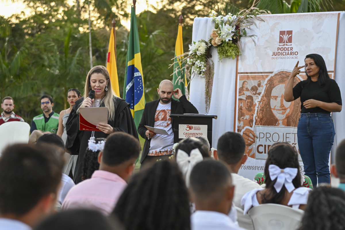 A cerimônia ocorreu de modo inclusivo contando com linguagem simples e com tradução em Libras. A cerimônia contou com a participação de representantes da Incra, do MPAC, da DPE/AC e do Cartório Extrajudicial da Comarca de Mâncio Lima.