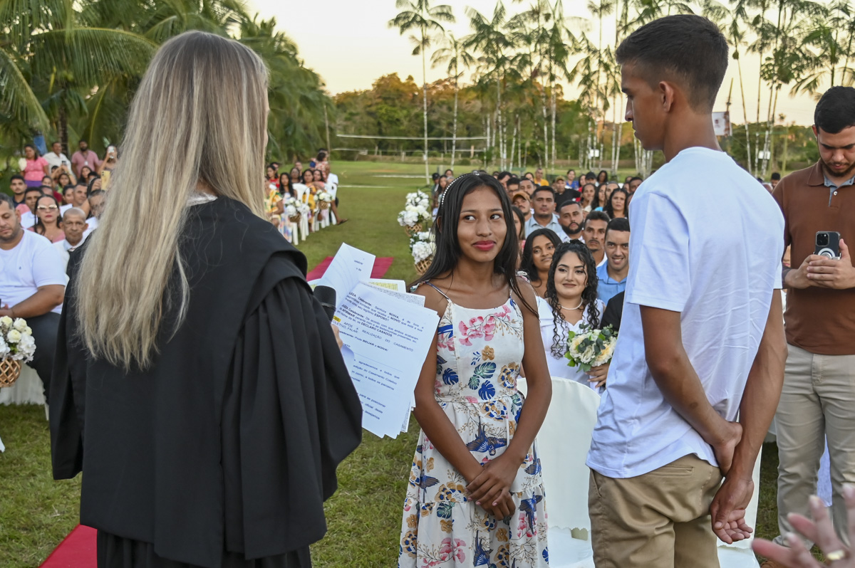 Domingo de alegria para 80 casais que realizaram a troca de alianças em um evento marcado pela beleza do pôr do sol e emoção compartilhada entre noivos, familiares e autoridades presentes. A cerimônia de casamento coletivo, realizada no fim da tarde de domingo, 20, no Balneário Bethânea, em Mâncio Lima, encerrou mais uma edição do Projeto Cidadão.