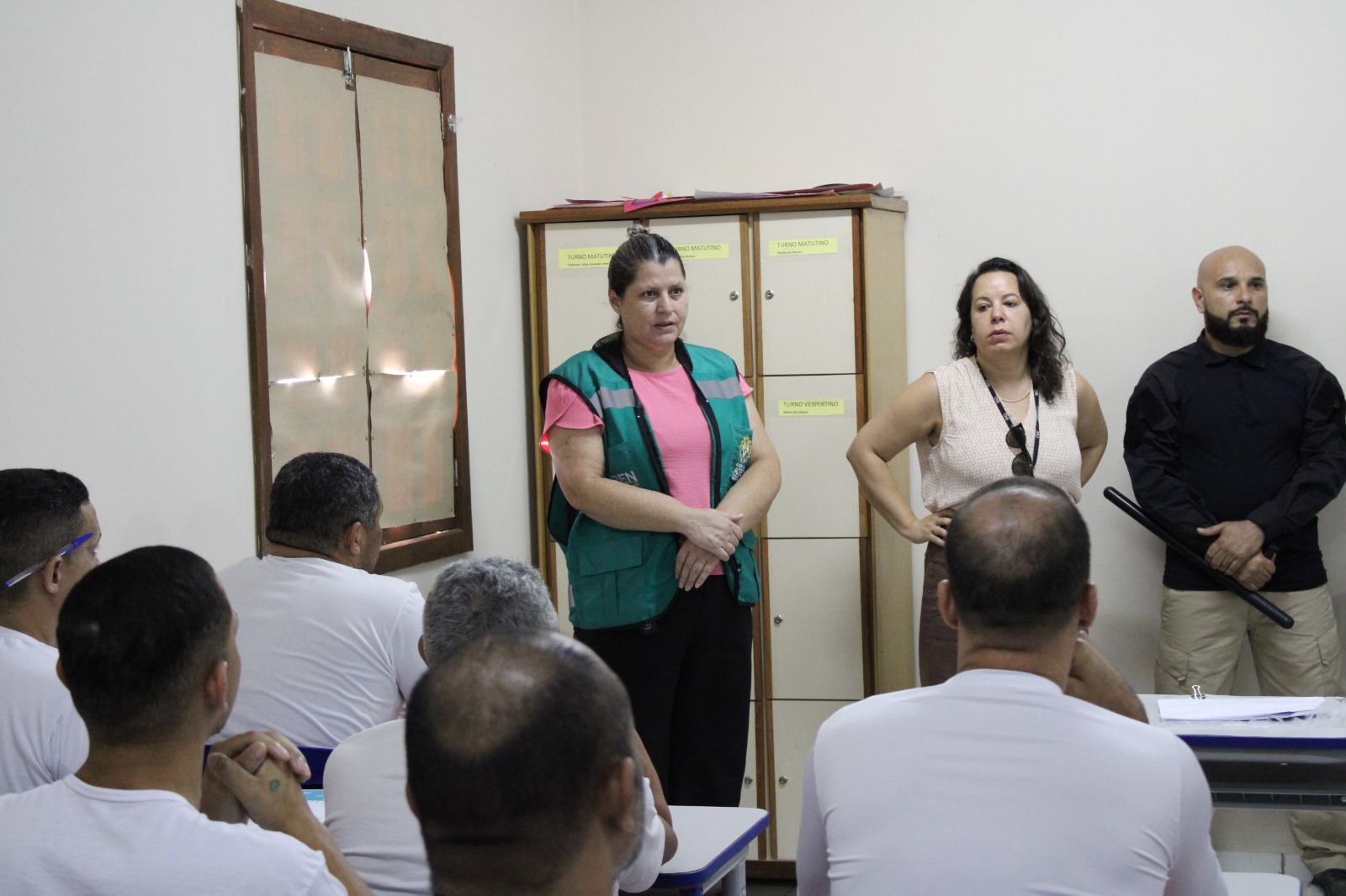 Em Tarauacá, a atividade foi realizada nos dias 15 e 16, contemplando 18 mulheres em privação de liberdade da ala feminina do presídio. A ação contou com a participação da juíza de Direito Stephanie Wink, integrante do GMF; do diretor da UPMP, José Viana de Souza; da assessora jurídica da Defensoria Pública do Estado do Acre (DPE/AC) Lohane Lima; da diretora técnica da equipe multidisciplinar da Unidade Penitenciária Moacir Prado, a pedagoga Luciana França da Silva; bem como da coordenadora de segurança do presídio, Marleide Falcão.