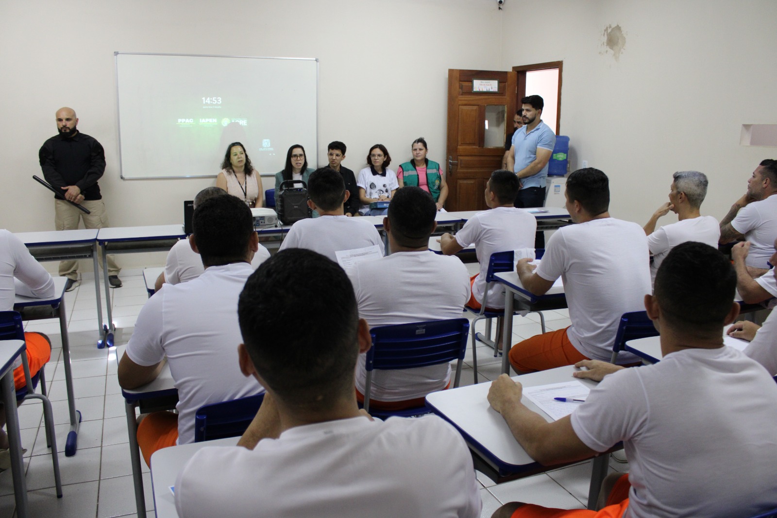Já nos dias 17 e 18 foi a vez de 60 apenados que cumprem penas privativas de liberdade na Unidade Penitenciária do Quinari (UPQ) serem beneficiados pela ação. Participaram das atividades, em Senador Guiomard, a juíza de Direito substituta Natália Maia, representando o GMF; a assessora técnica do CNJ Rúbia Evangelista; o diretor da unidade penitenciária, Maycon Mendonça; bem como a chefe da Divisão de Educação Prisional do Instituto de Administração Penitenciária do Acre (Iapen/AC), Margarete Santos.