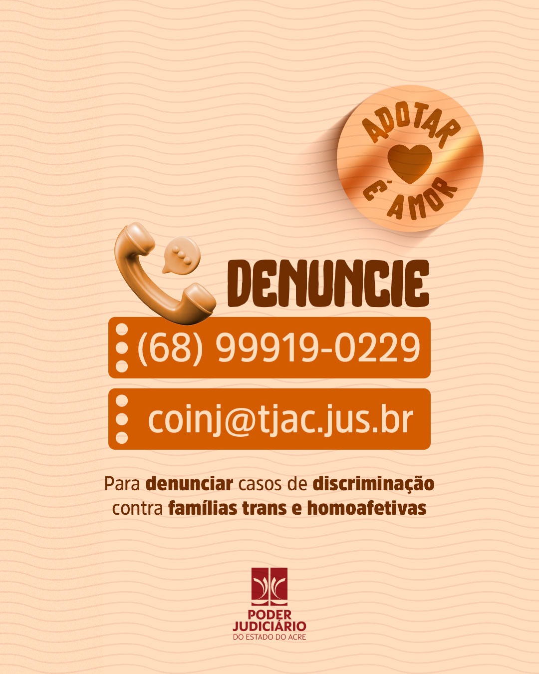 O Tribunal de Justiça do Acre (TJAC) criou um canal de denúncias para casos de discriminação contra famílias homoafetivas e transafetivas, para garantir o direito de pessoas homossexuais e trans de adotarem crianças e adolescentes com igualdade e respeito, sem sofrer qualquer preconceito ou tratamento indevido.