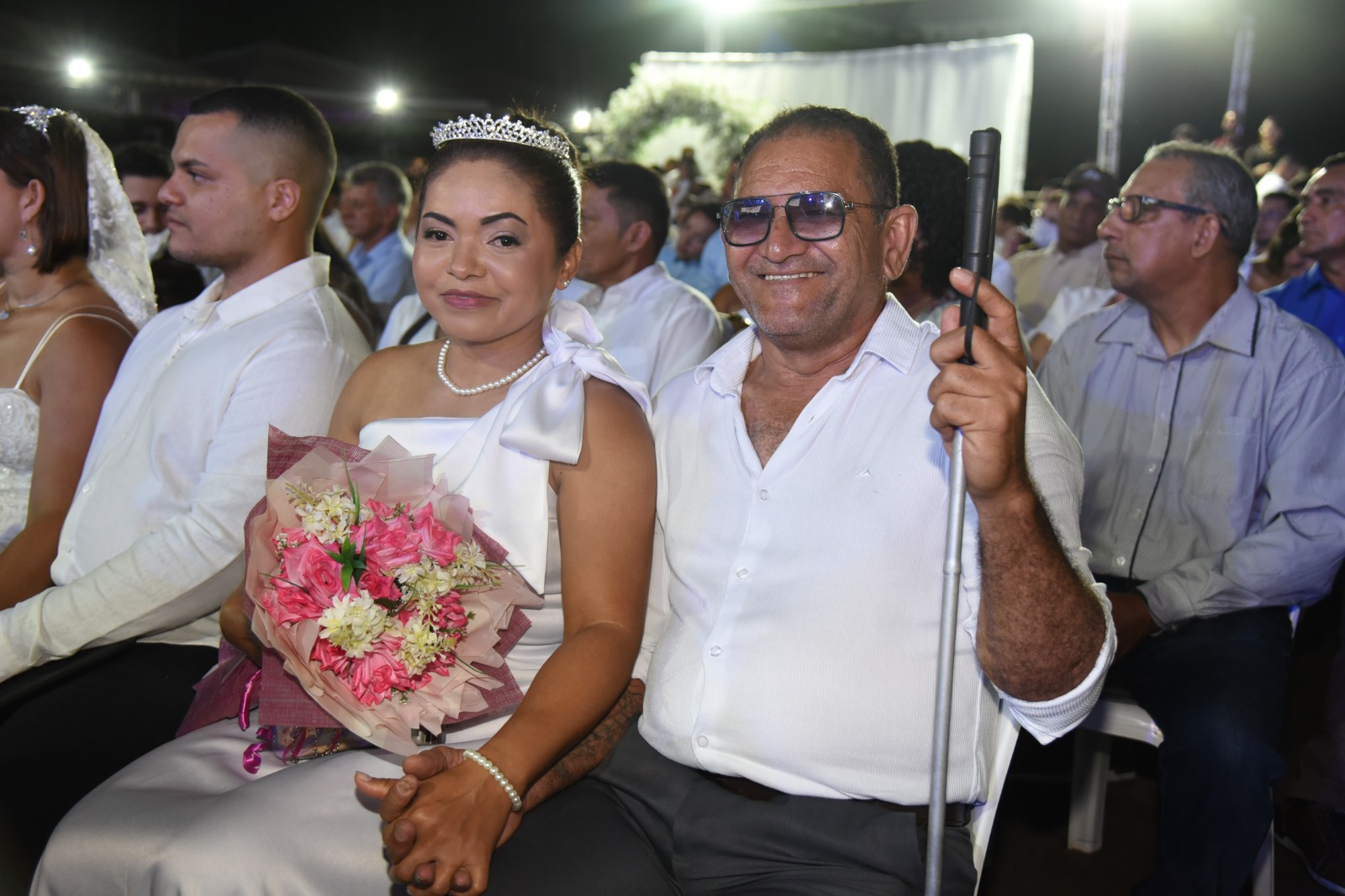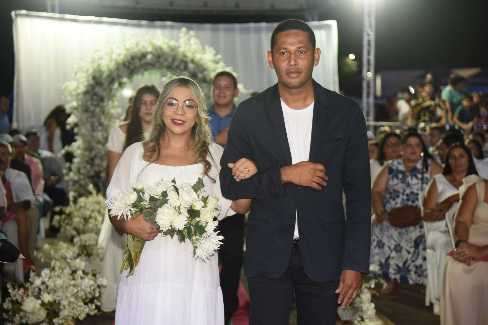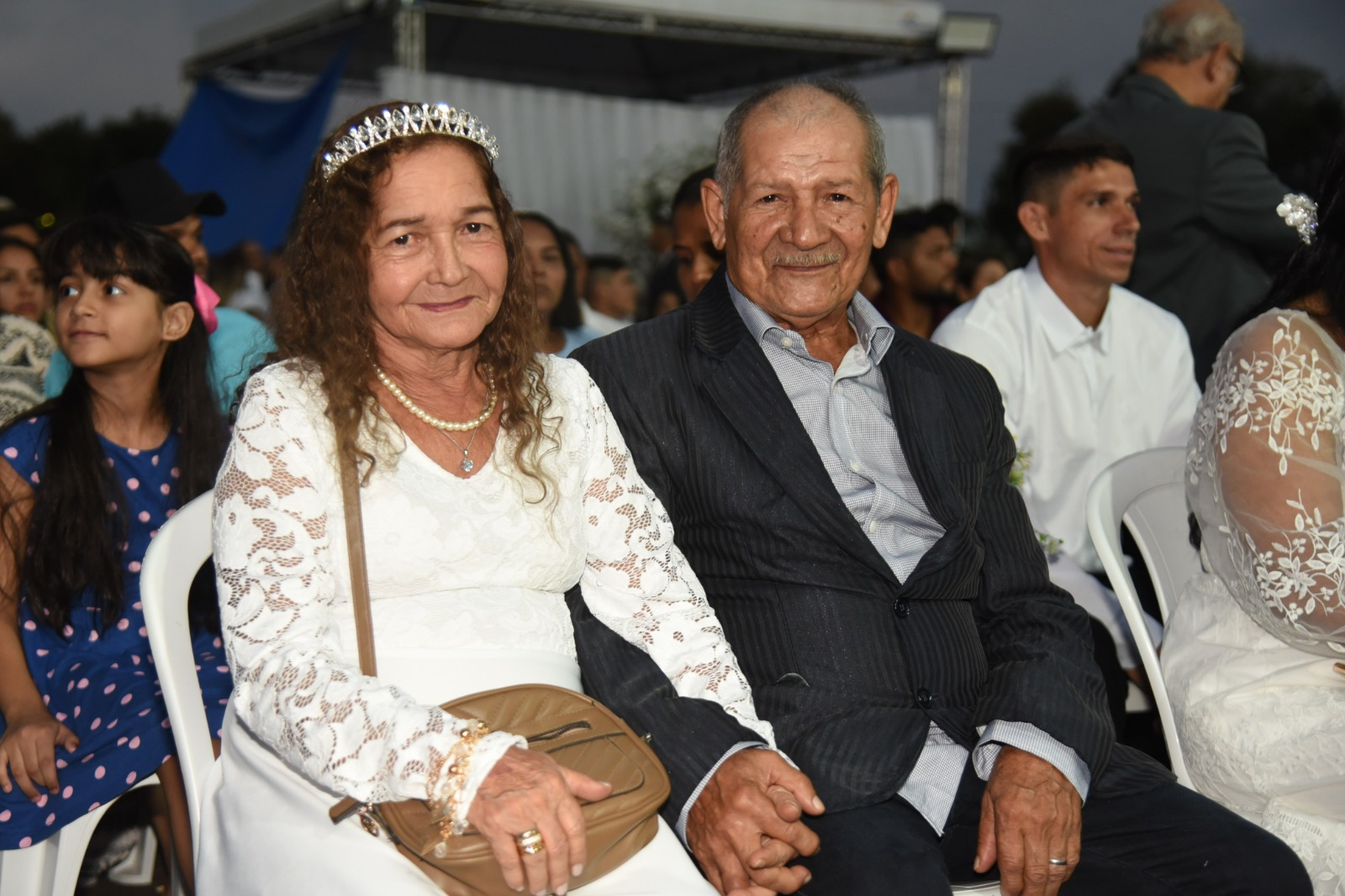 Usando pela primeira vez aos 67 anos de idade vestido branco e uma tiara sob a cabeça que não tinha pedras preciosas, mas brilhava muito, Luzinete de Araújo oficializou sua união com Otávio Ferreira de Souza, 77 anos, neste sábado, 2. Eles casaram-se na companhia de mais 382 casais no casamento do coletivo do Projeto Cidadão, do Tribunal de Justiça do Acre (TJAC), realizado na arena de shows do Parque de Exposições Wildy Viana, na Expoacre 2025.