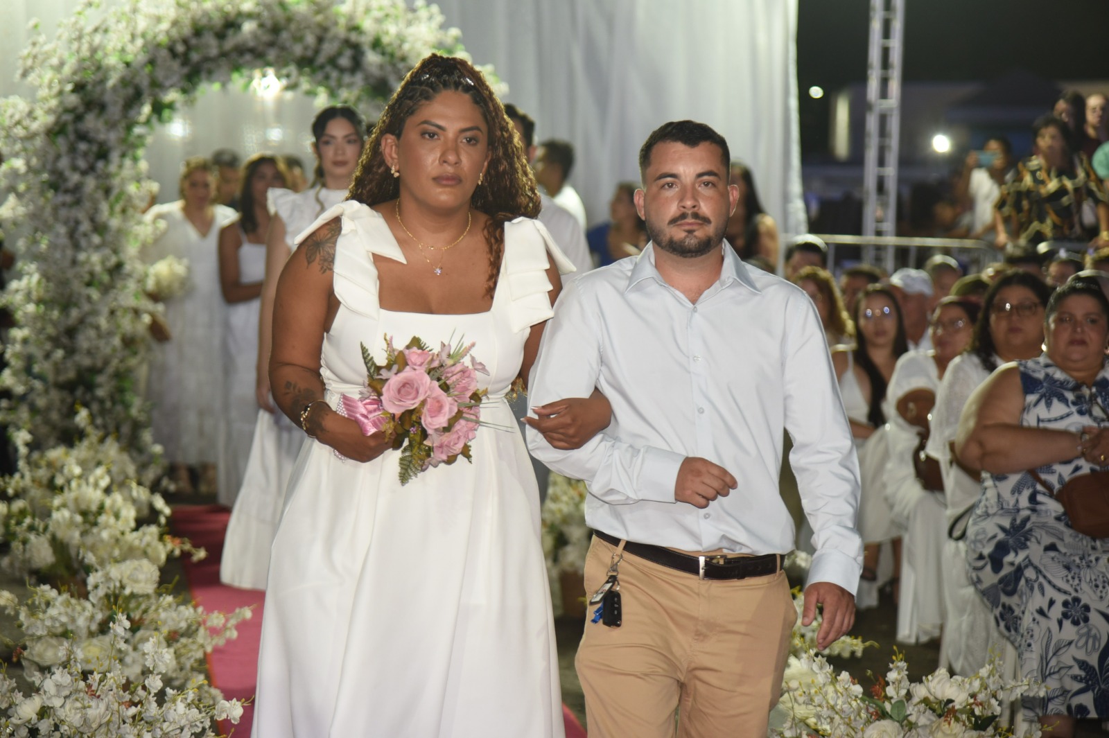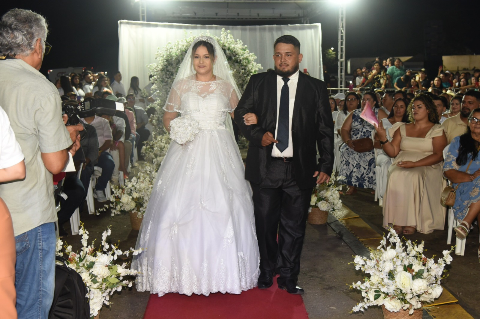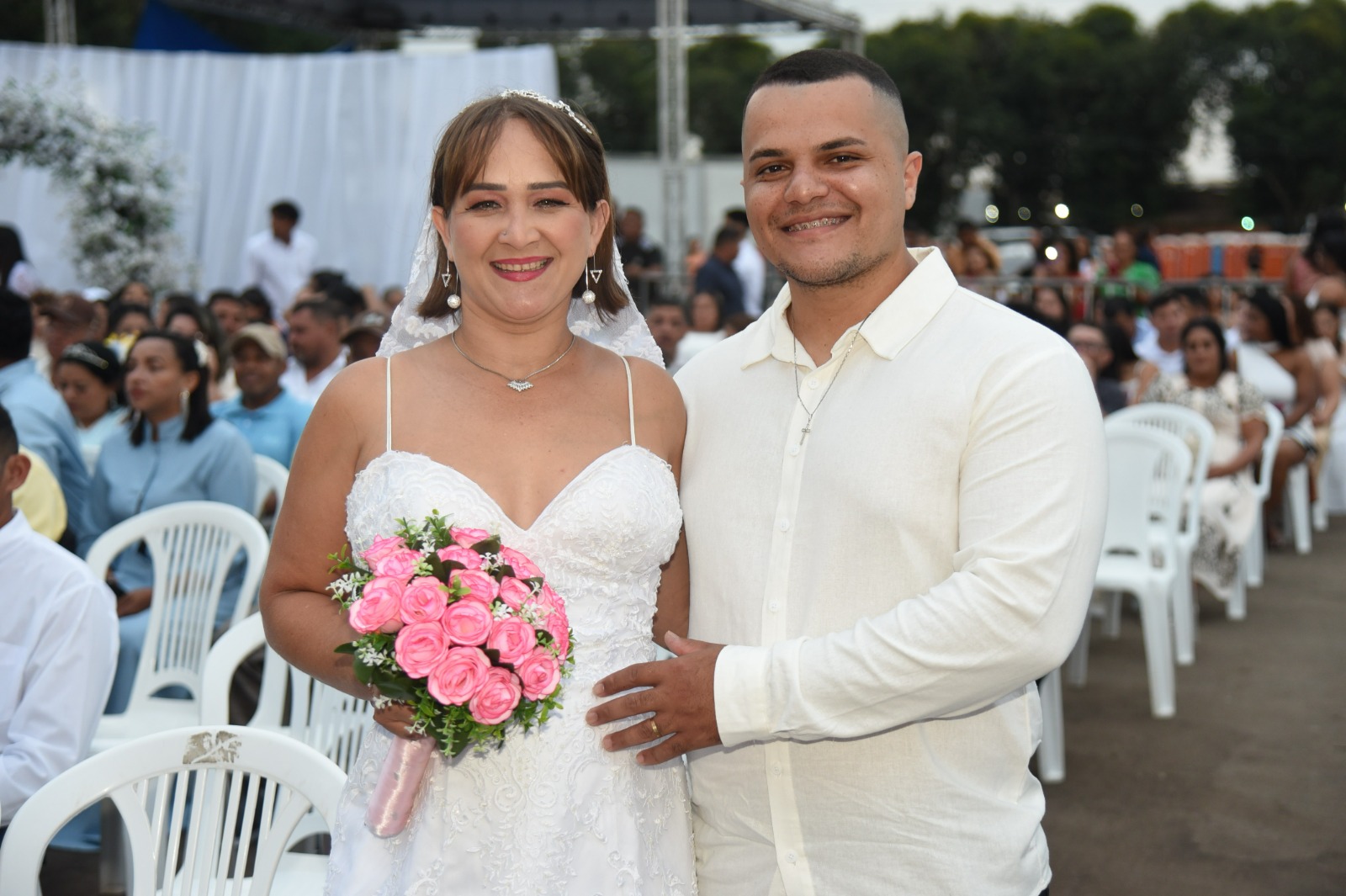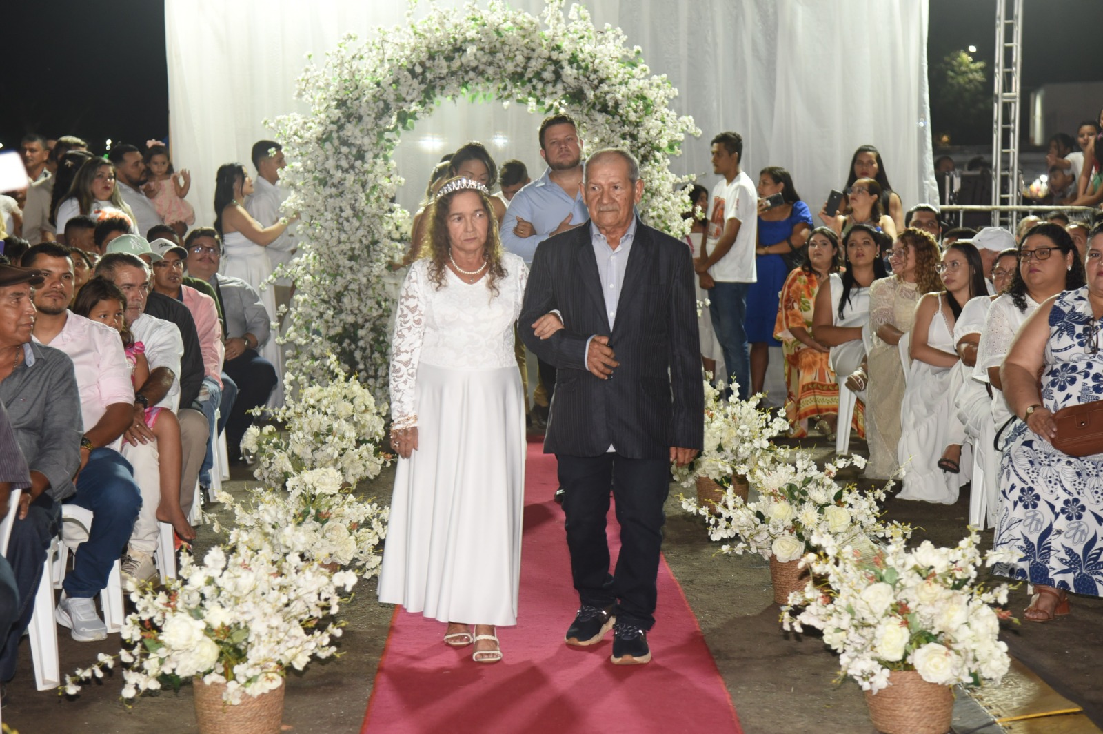 Usando pela primeira vez aos 67 anos de idade vestido branco e uma tiara sob a cabeça que não tinha pedras preciosas, mas brilhava muito, Luzinete de Araújo oficializou sua união com Otávio Ferreira de Souza, 77 anos, neste sábado, 2. Eles casaram-se na companhia de mais 382 casais no casamento do coletivo do Projeto Cidadão, do Tribunal de Justiça do Acre (TJAC), realizado na arena de shows do Parque de Exposições Wildy Viana, na Expoacre 2025.