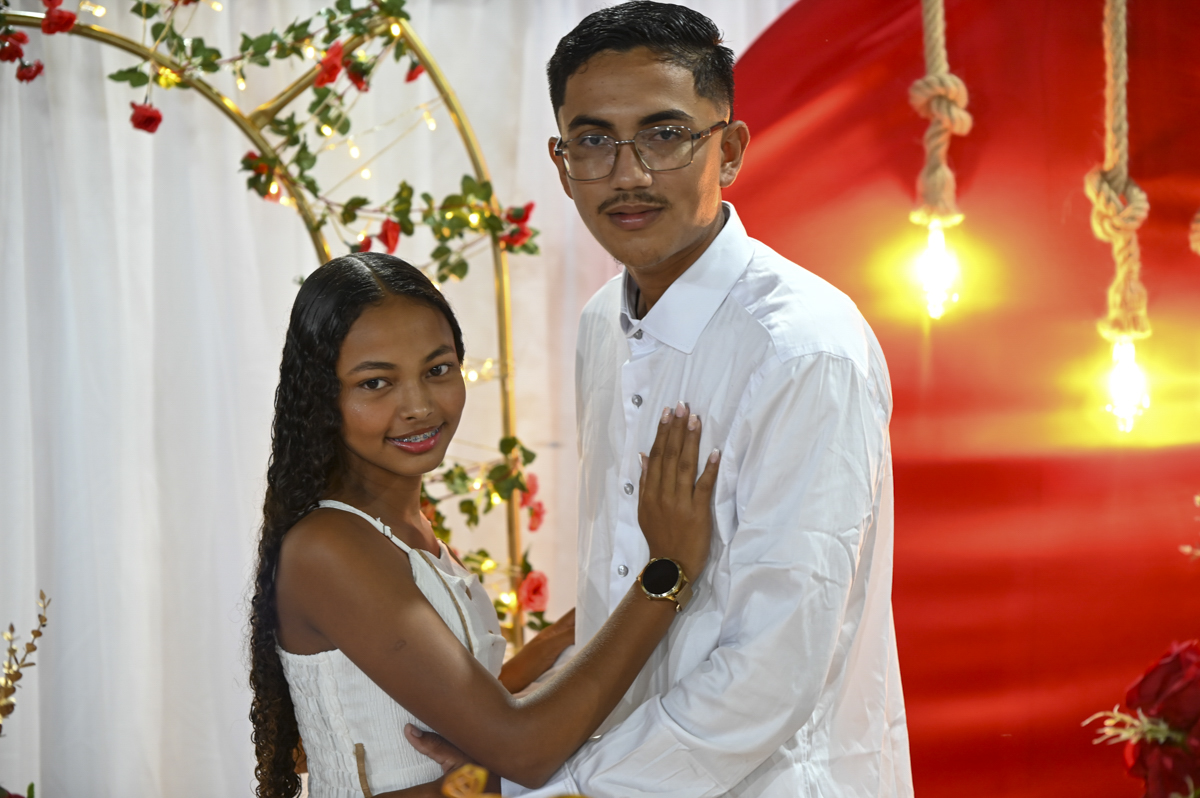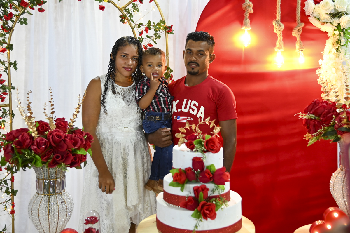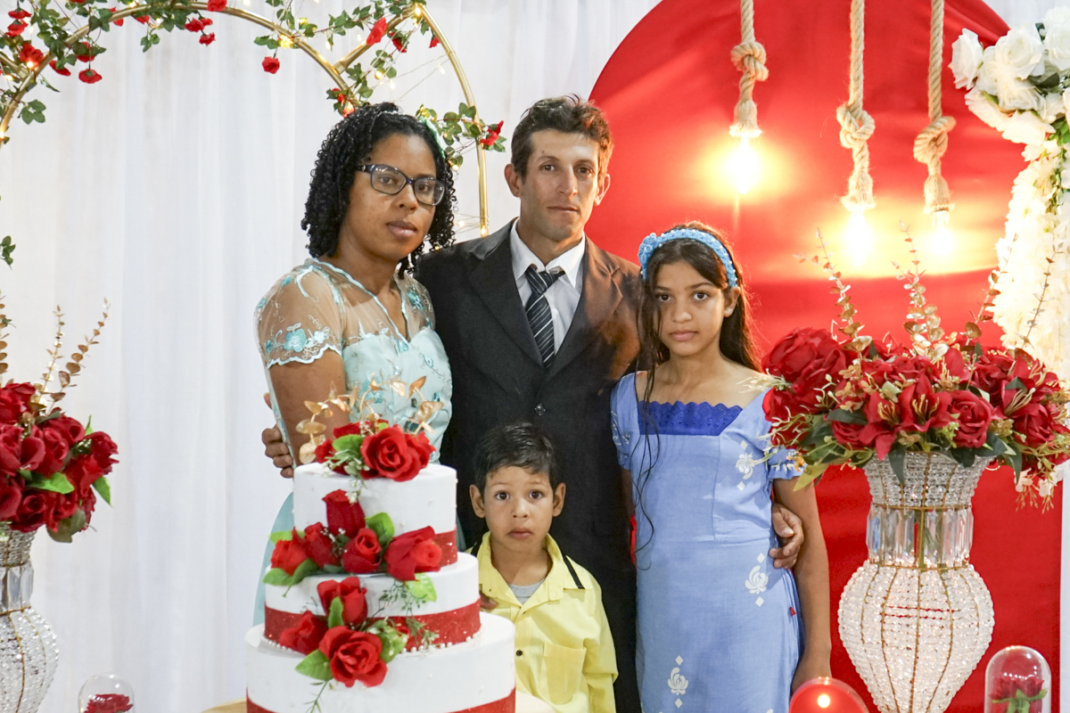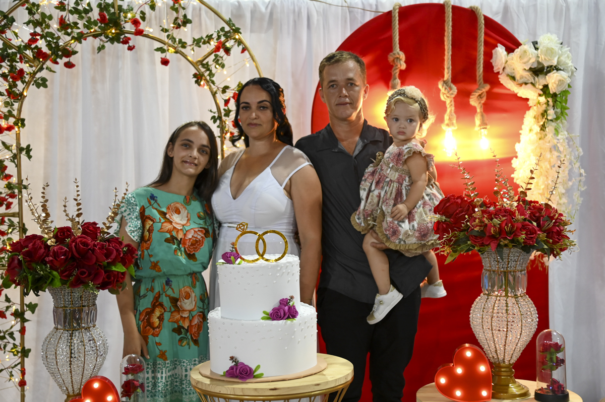 Juntos há quase duas décadas, Maria Antônia Cardeal, de 37 anos, e o esposo Eurípedes Almeida, de 39, estavam duplamente felizes com o momento. Por coincidência, a cerimônia aconteceu na mesma data do aniversário da filha mais nova do casal, Lis, que completou 13 anos. A família estava ansiosa para, após a cerimônia, celebrarem. “A expectativa é continuar cuidando da nossa família, sendo abençoados por Deus e quem sabe ter mais um menino”, afirmaram.